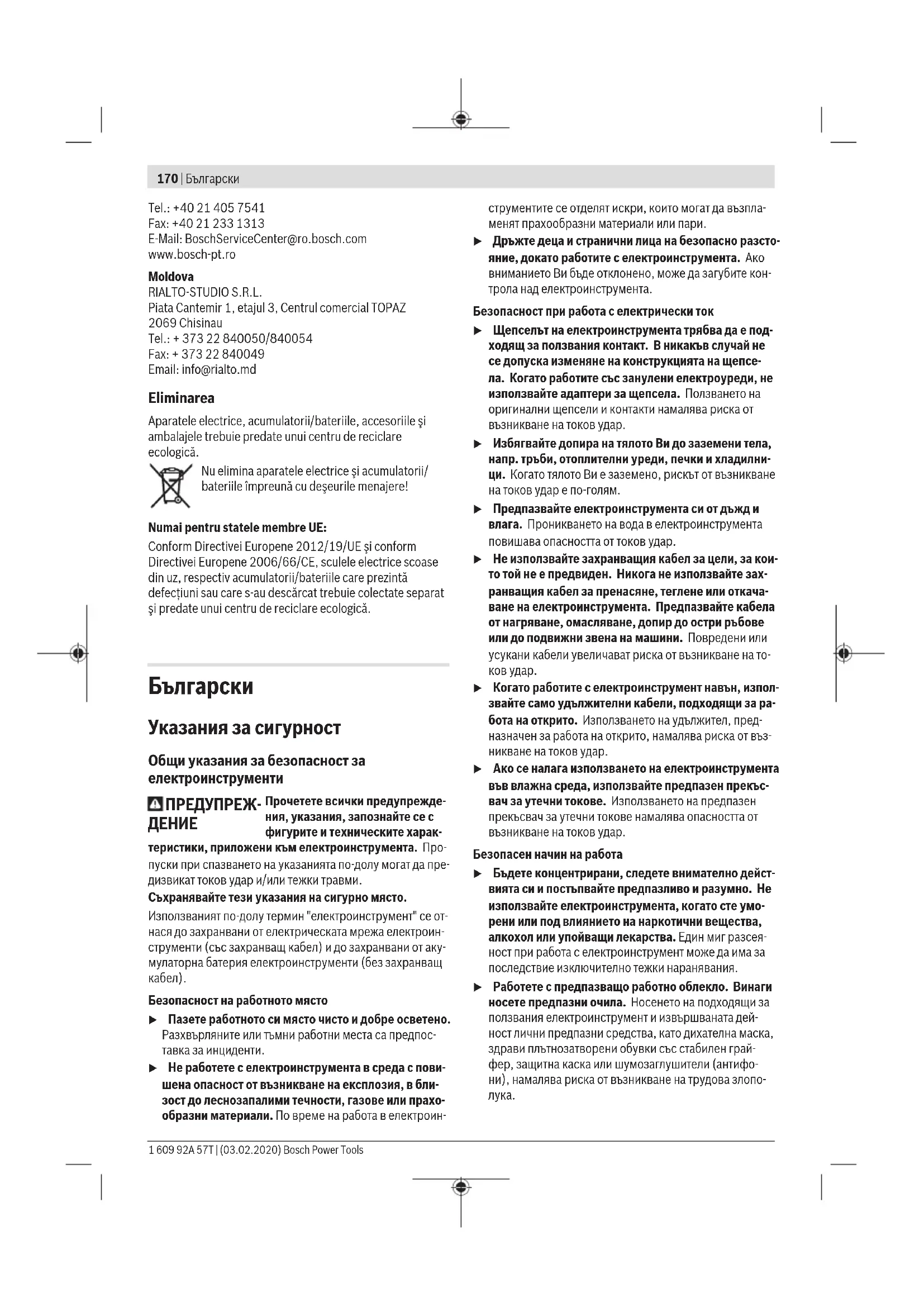 Сервизът ще отговори на въпросите Ви относно ремонти и поддръжка на закупения от Вас продукт, както и относ- но резервни части. Покомпонентни чертежи и информа- ция за резервните части ще откриете и на: www.bosch- pt.com Екипът по консултация относно употребата на Bosch ще Ви помогне с удоволствие при въпроси за нашите про- дукти и техните аксесоари. Моля, при въпроси и при поръчване на резервни части винаги посочвайте 10-цифрения каталожен номер, изпи- сан на табелката на уреда.