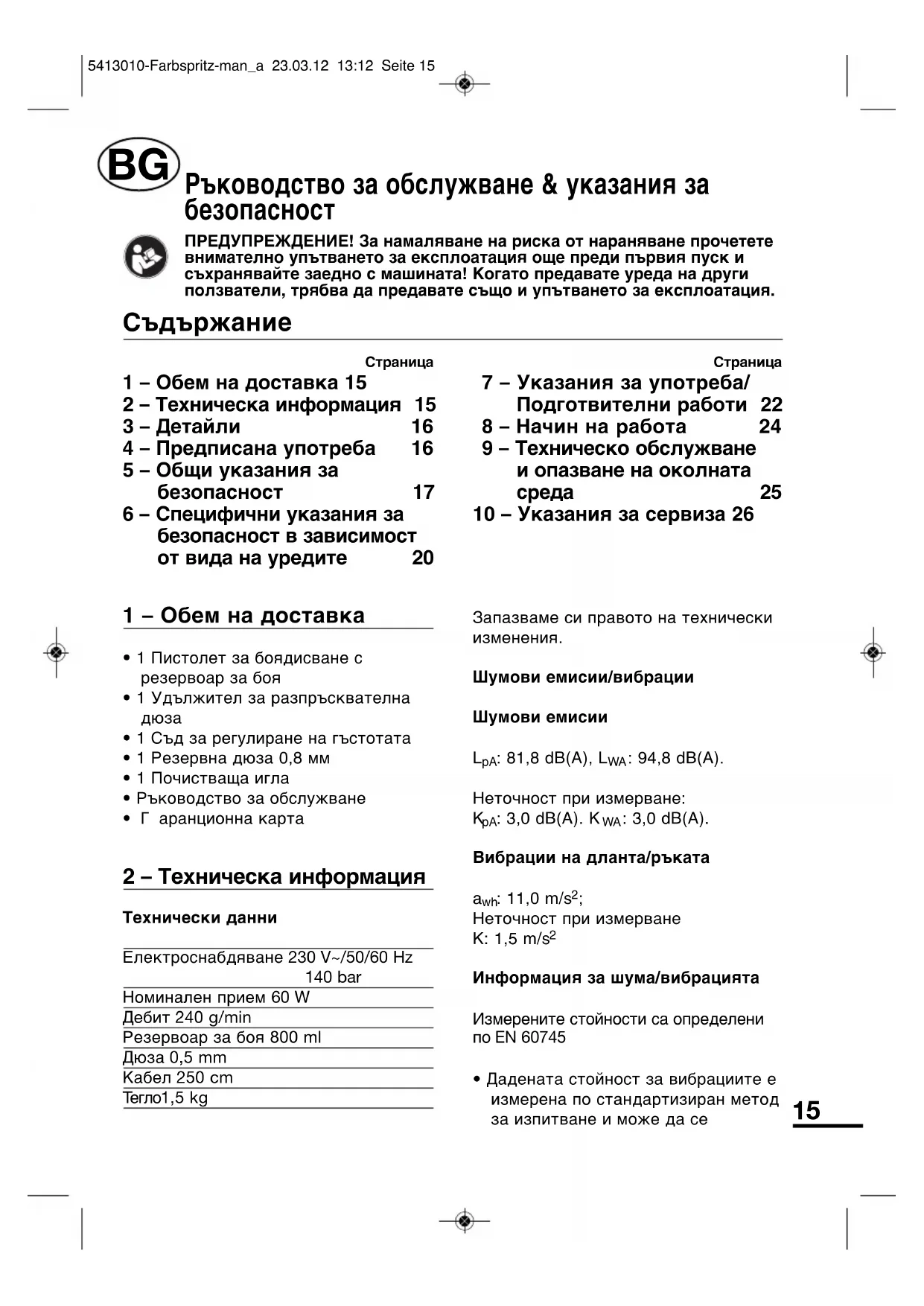 - Засъхналите остатъци от боя въздействат върху функцията на изходната дюза и при тези обстоятелства ограничават изискванията по гаранцията.