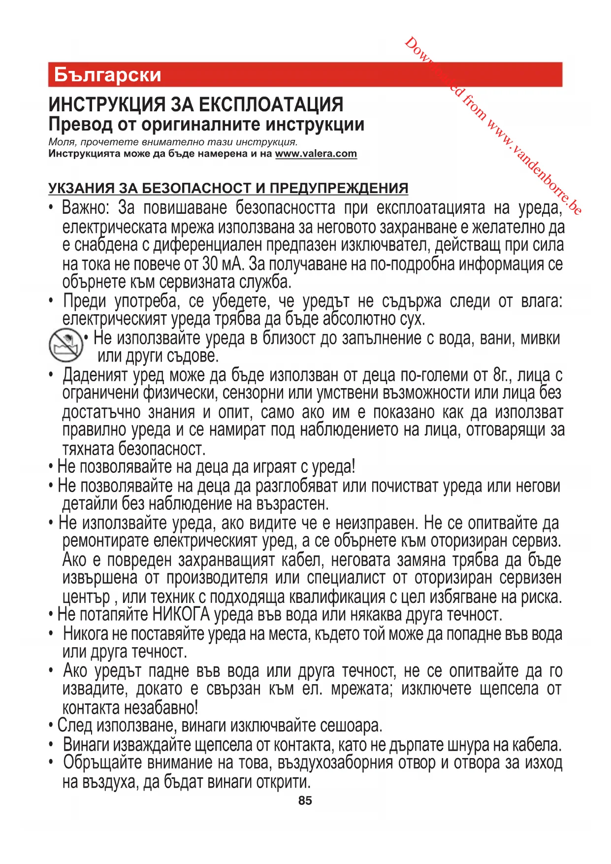 VALERA е регистрирана търгоска марка на Ligo Electric S.A. - Швейцария Downloaded from www.vandenborre.be88