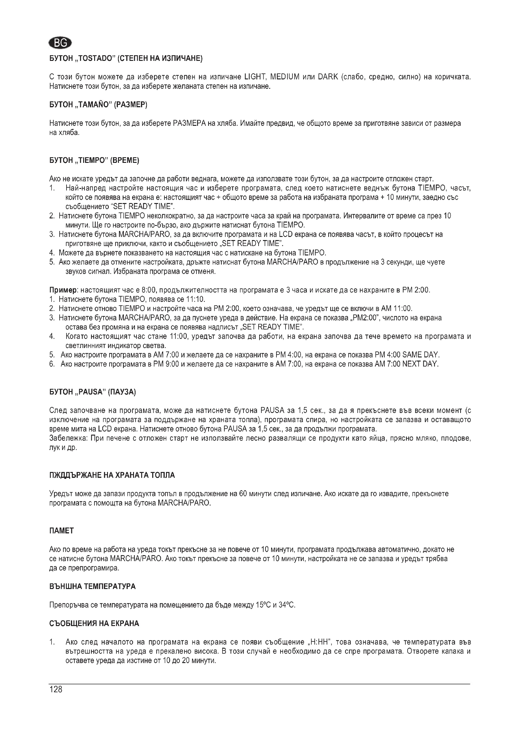 РЪКОВОДСТВО ЗА ПОТРЕБИТЕЛЯ Bake Pro PALSON