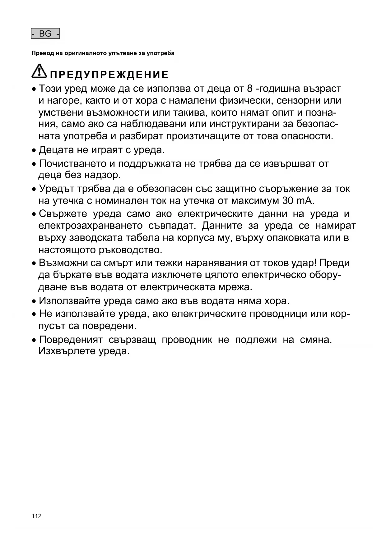 - BG - Превод на оригиналното упътване за употреба ПРЕДУПРЕЖДЕНИЕ