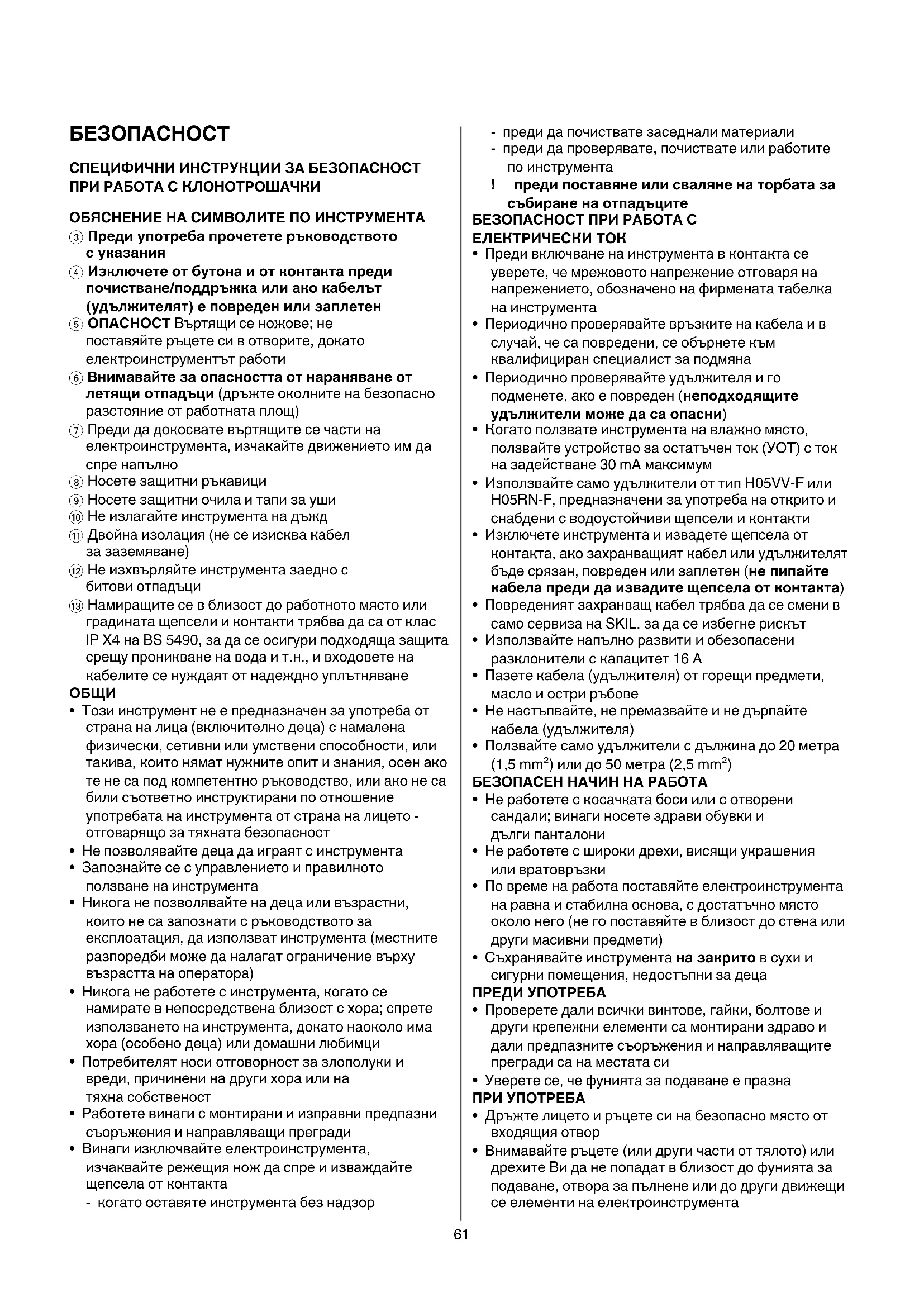 - Повреденият захранващ кабел трябва да се смени в само сервиса на SKIL, за да се избегне рискът
