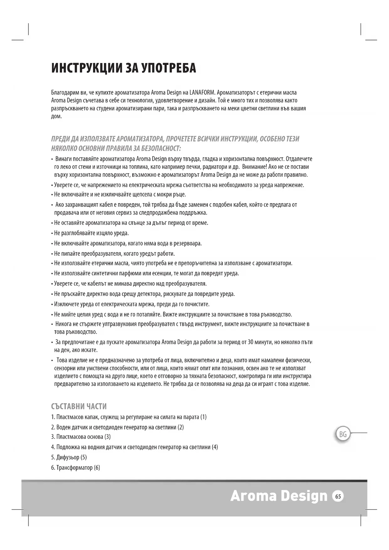 РЪКОВОДСТВО ЗА ПОТРЕБИТЕЛЯ Aroma Design LANAFORM