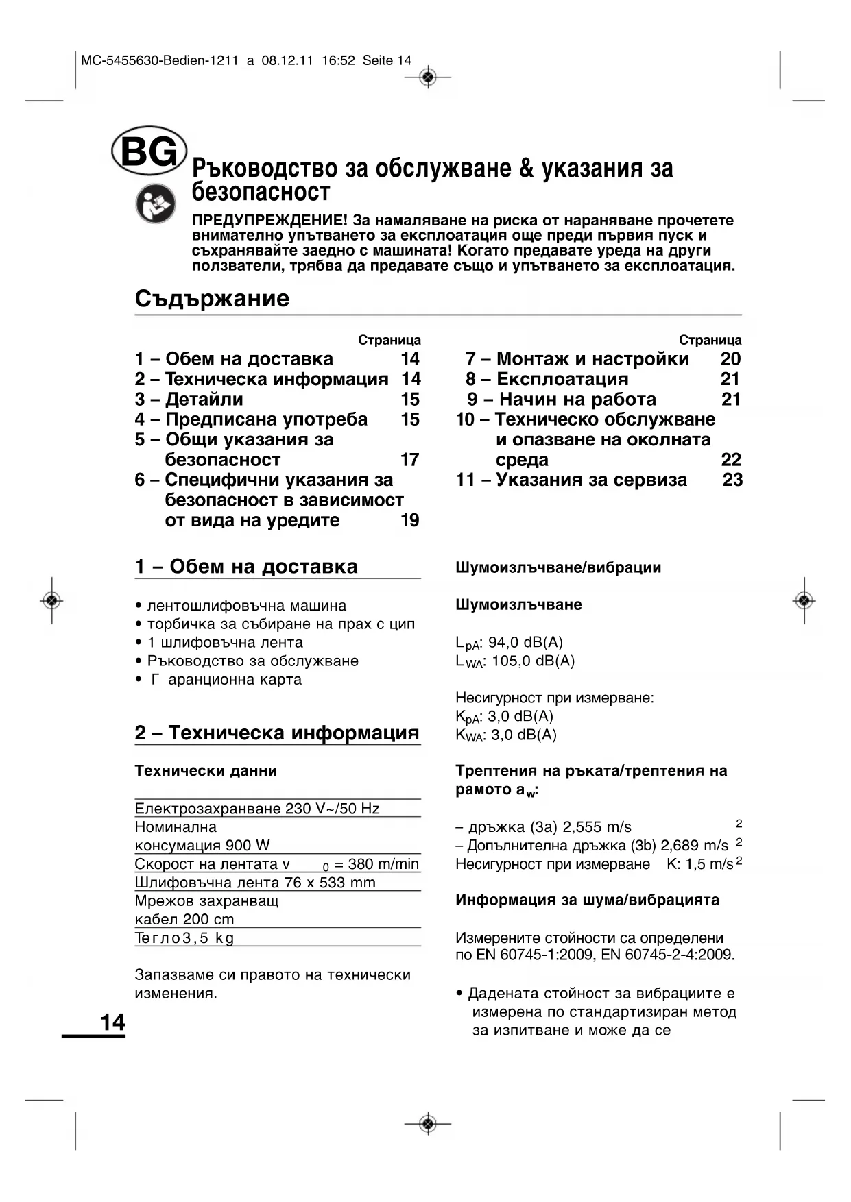 MBS 900 D - шлайфмашина Meister Craft - Безплатно ръководство за потребителя