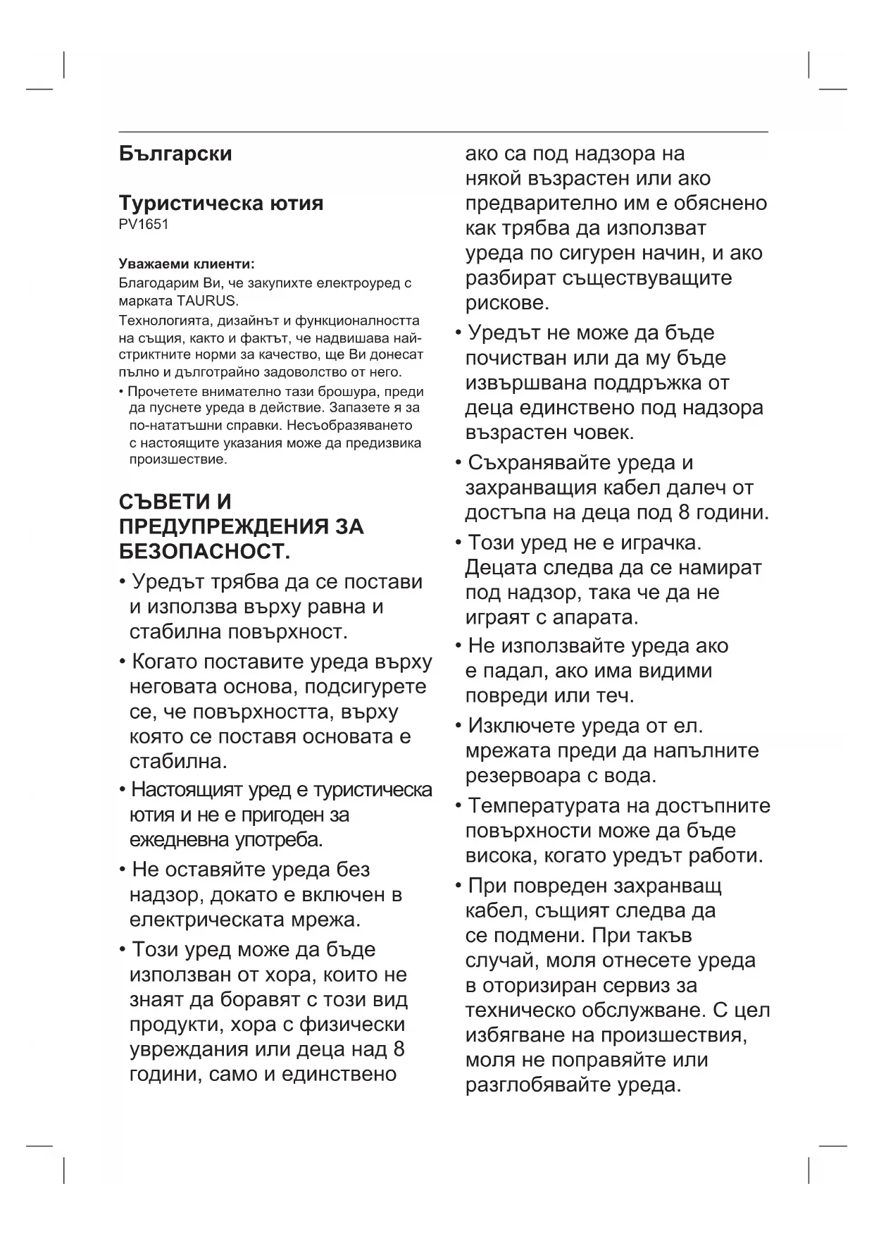 - Настоящият уред е туристическа ютия и не е пригоден за ежедневна употреба.