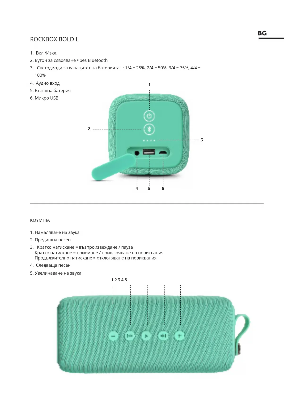 РЪКОВОДСТВО ЗА ПОТРЕБИТЕЛЯ Rockbox Bold L Fresh 'n Rebel