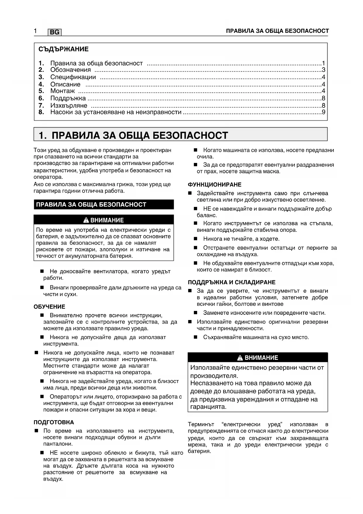 Ако се използва с максимална грижа, този уред ще гарантира години отлична работа. ПРАВИЛА ЗА ОБЩА БЕЗОПАСНОСТ