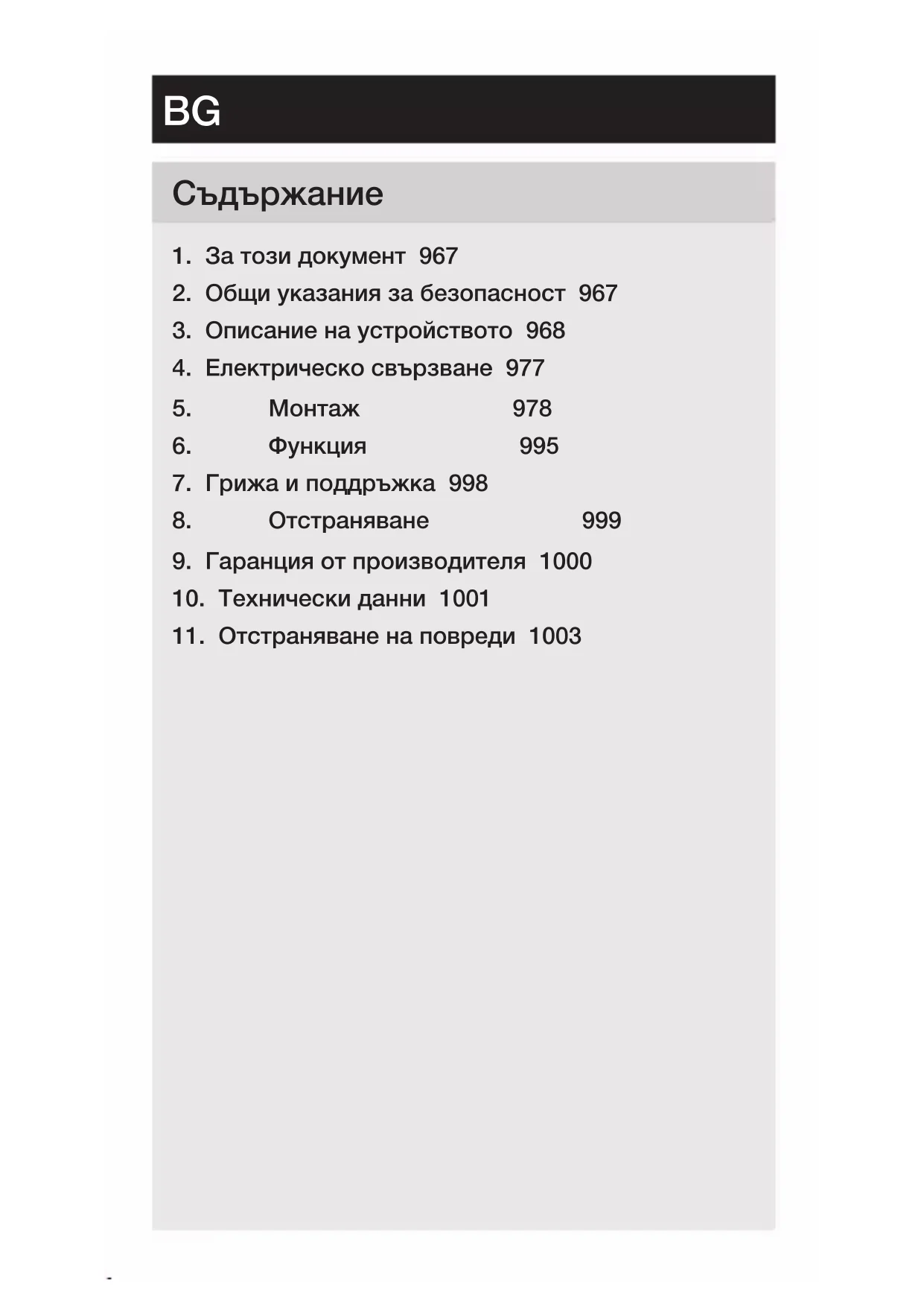 - Уредът да се почиства с леко влажна кърпа, без почистващ препарат. Важно: уредът е незаменяем.– 947 –