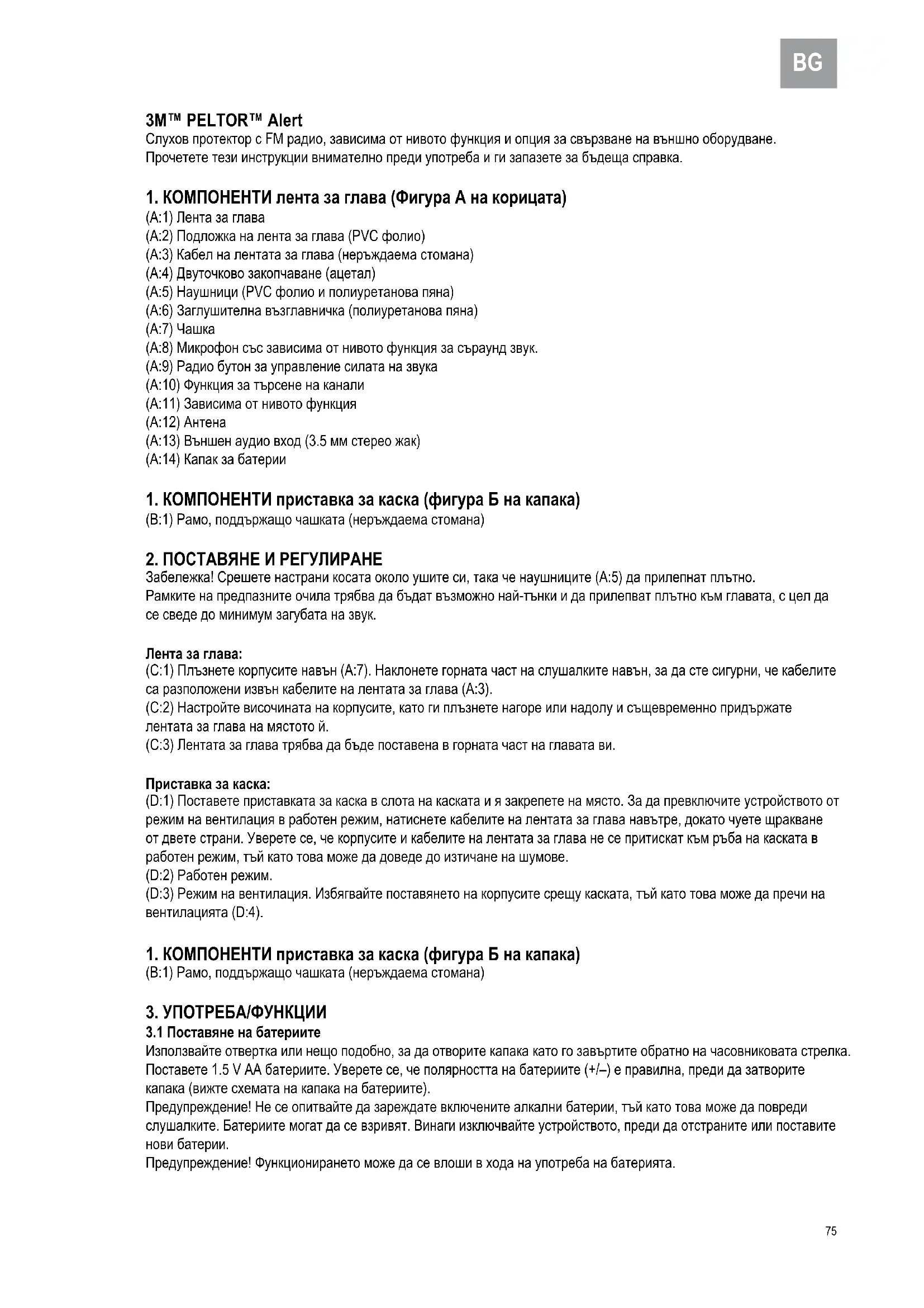 РЪКОВОДСТВО ЗА ПОТРЕБИТЕЛЯ Peltor Alert M2RX7P3E201 3M