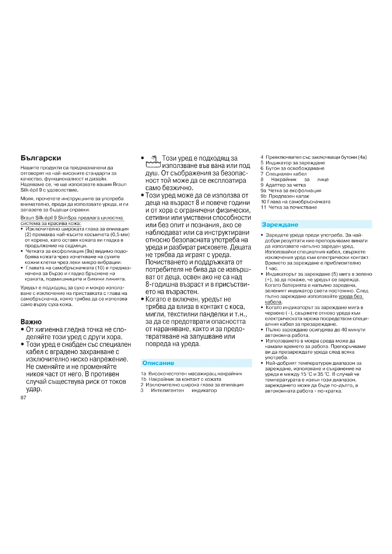 Нашите продукти са предназначени да отговорят на най-високите стандарти за качество, функционалност и дизайн. Надяваме се, че ще използвате вашия Braun Silk·épil 9 с удоволствие. Моля, прочетете инструкциите за употреба внимателно, преди да използвате уреда, и ги запазете за бъдещи справки. Braun Silk·épil 9 SkinSpa предлага цялостна система за красива кожа: