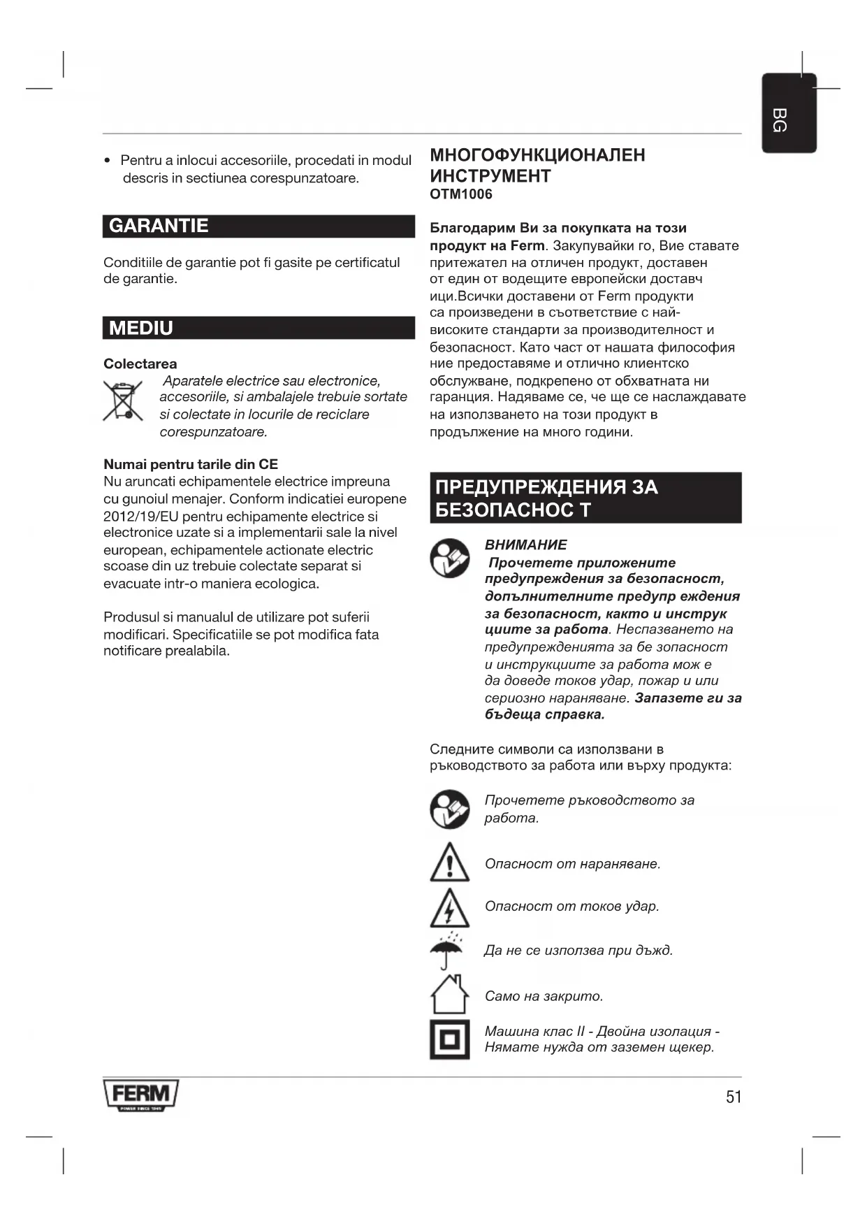 РЪКОВОДСТВО ЗА ПОТРЕБИТЕЛЯ OTM1006 Ferm