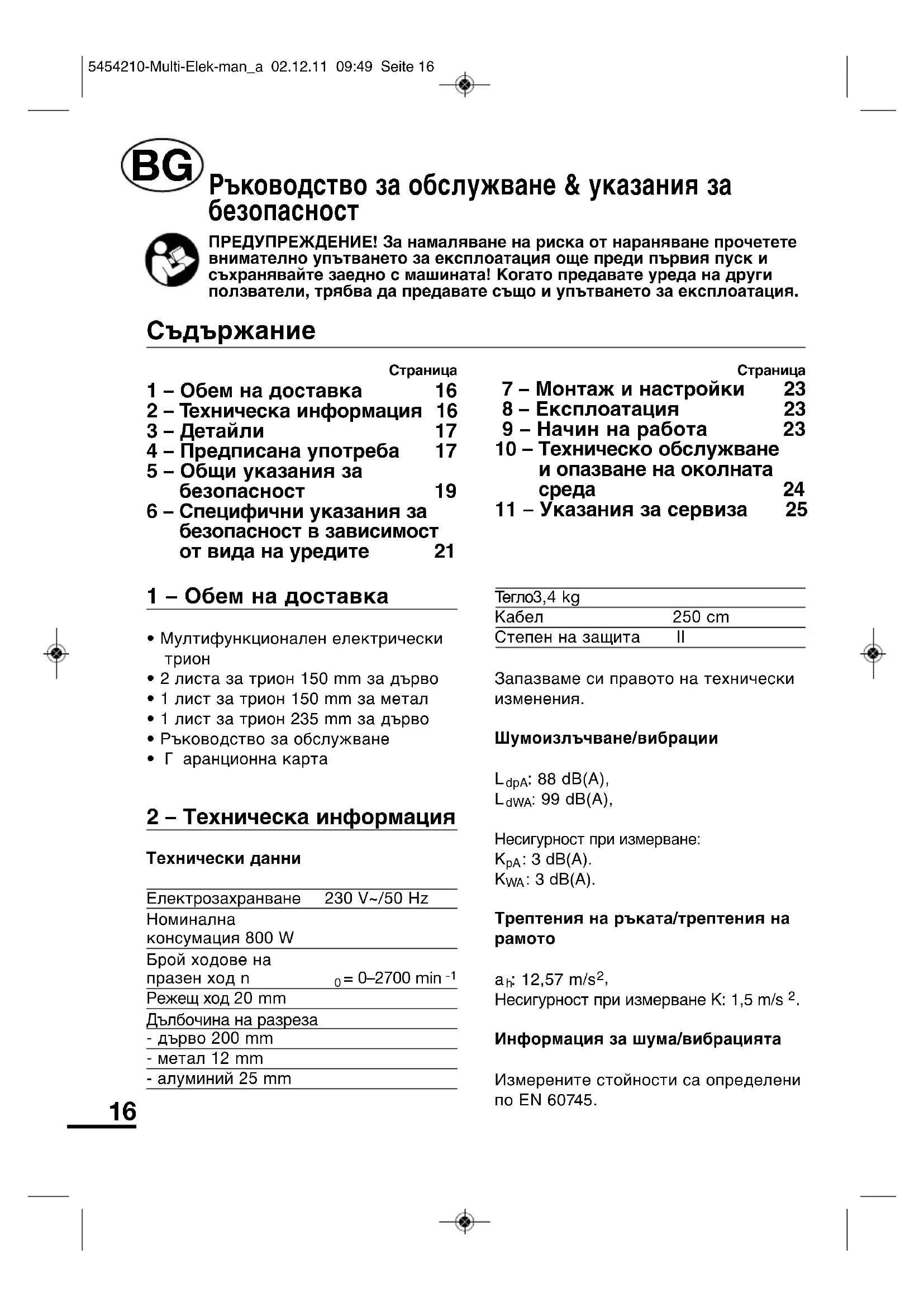 ВНИМАНИЕ! При употреба не по предназначение, при промени на уреда и употреба на части, които не са изпитани и допуснати за употреба от производителя, могат да възникнат непредвидени щети.