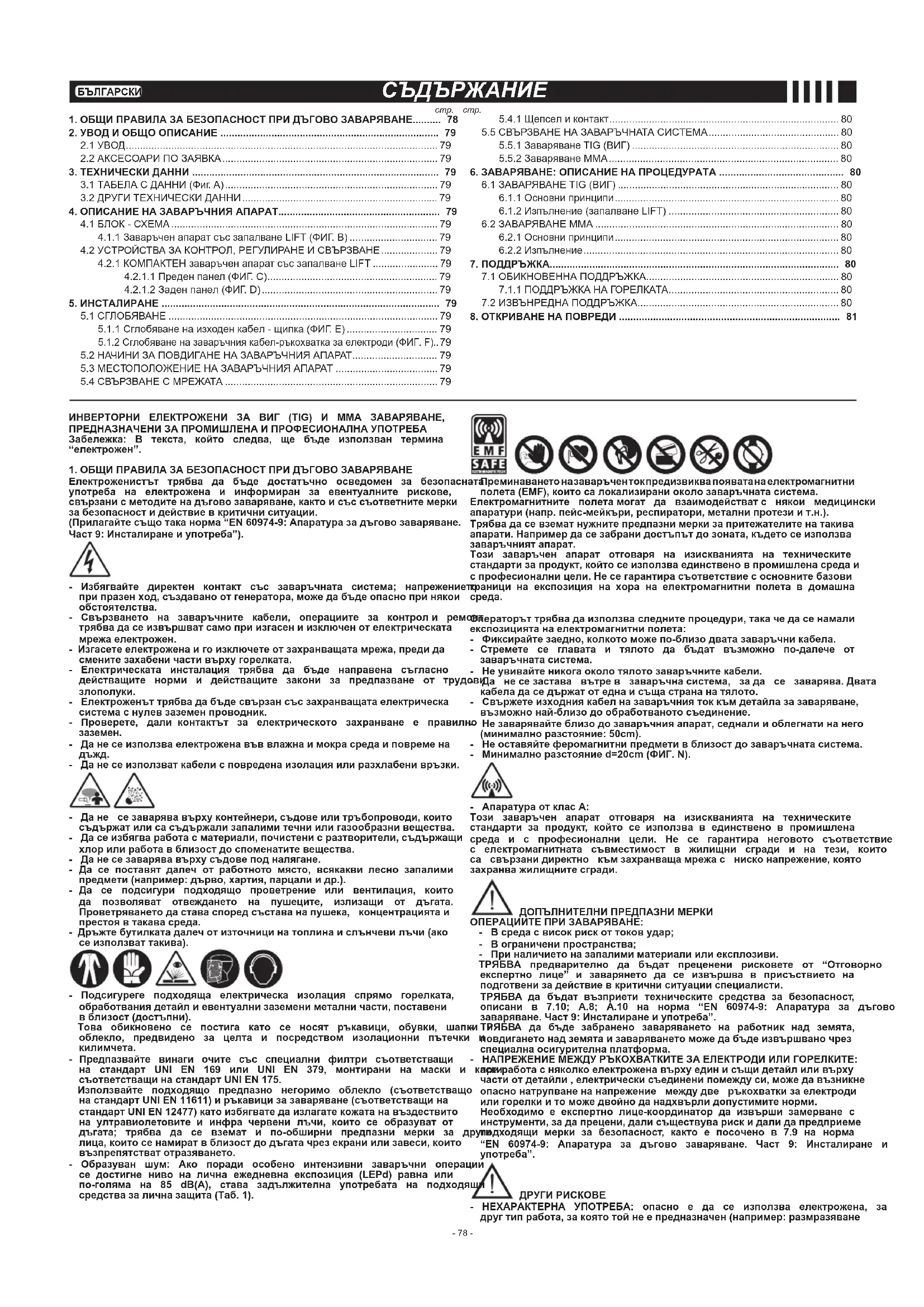 4.1.1 Заваръчен апарат със запалване LIFT (ФИГ. В) 79