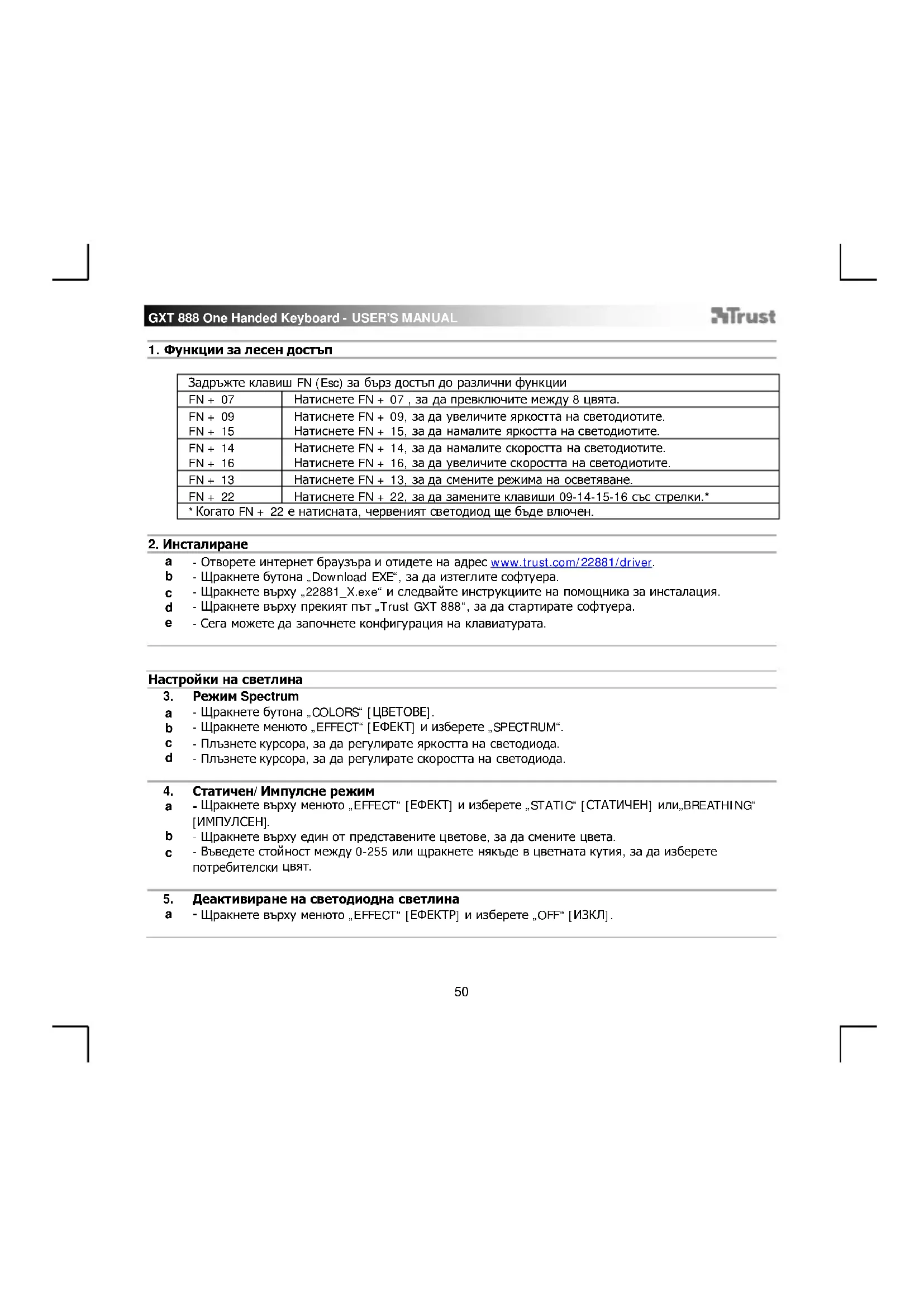 Assa GXT 888 - Клавиатура TRUST - Безплатно ръководство за потребителя