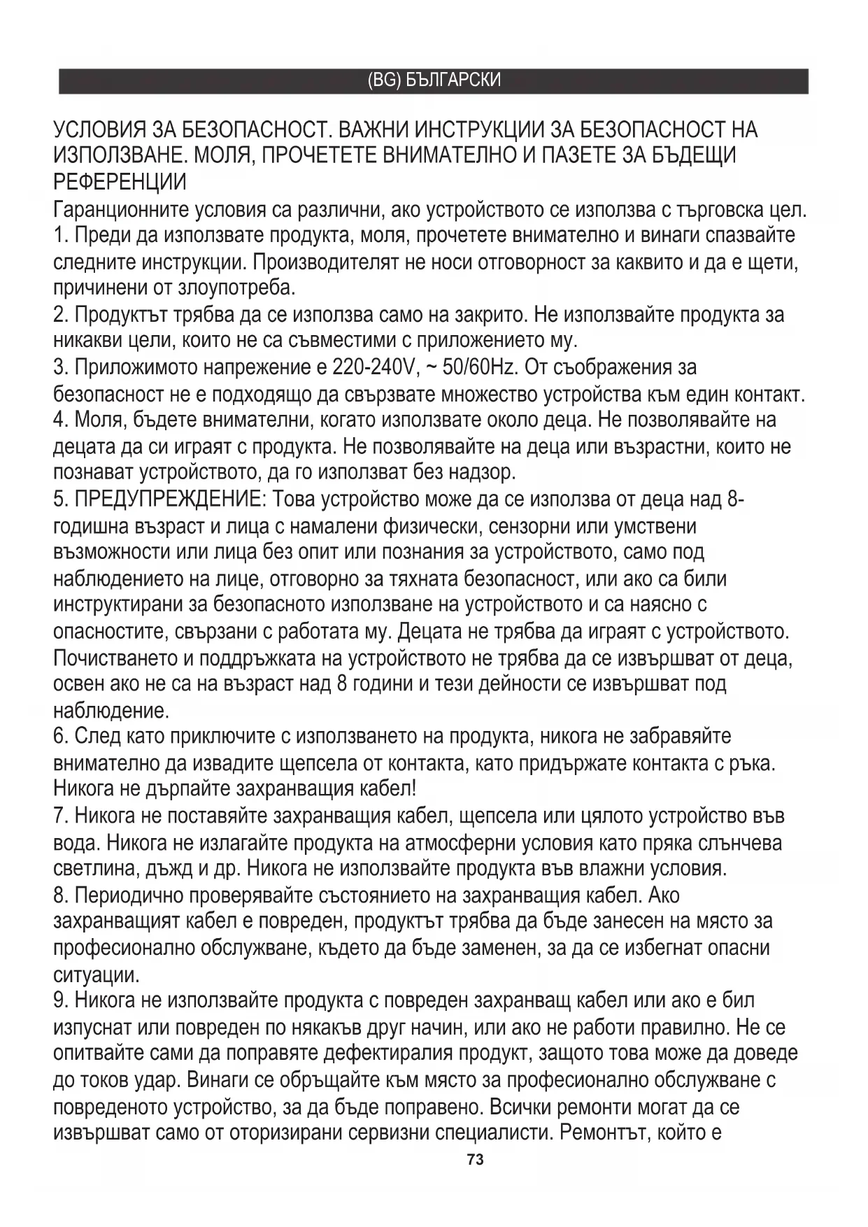 5. ПРЕДУПРЕЖДЕНИЕ: Това устройство може да се използва от деца над 8-