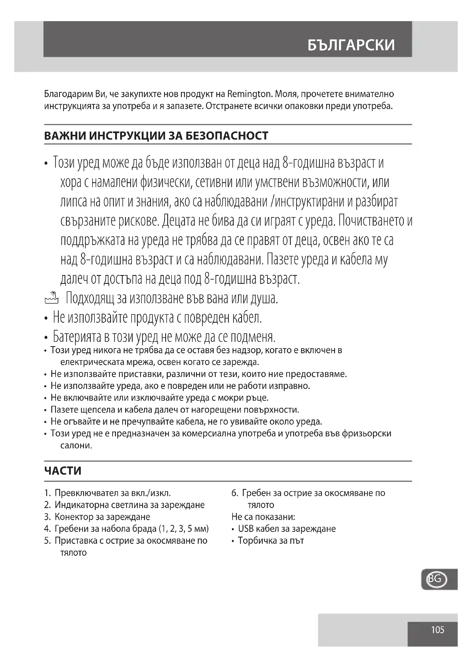 РЪКОВОДСТВО ЗА ПОТРЕБИТЕЛЯ Omniblade HG3000 REMINGTON