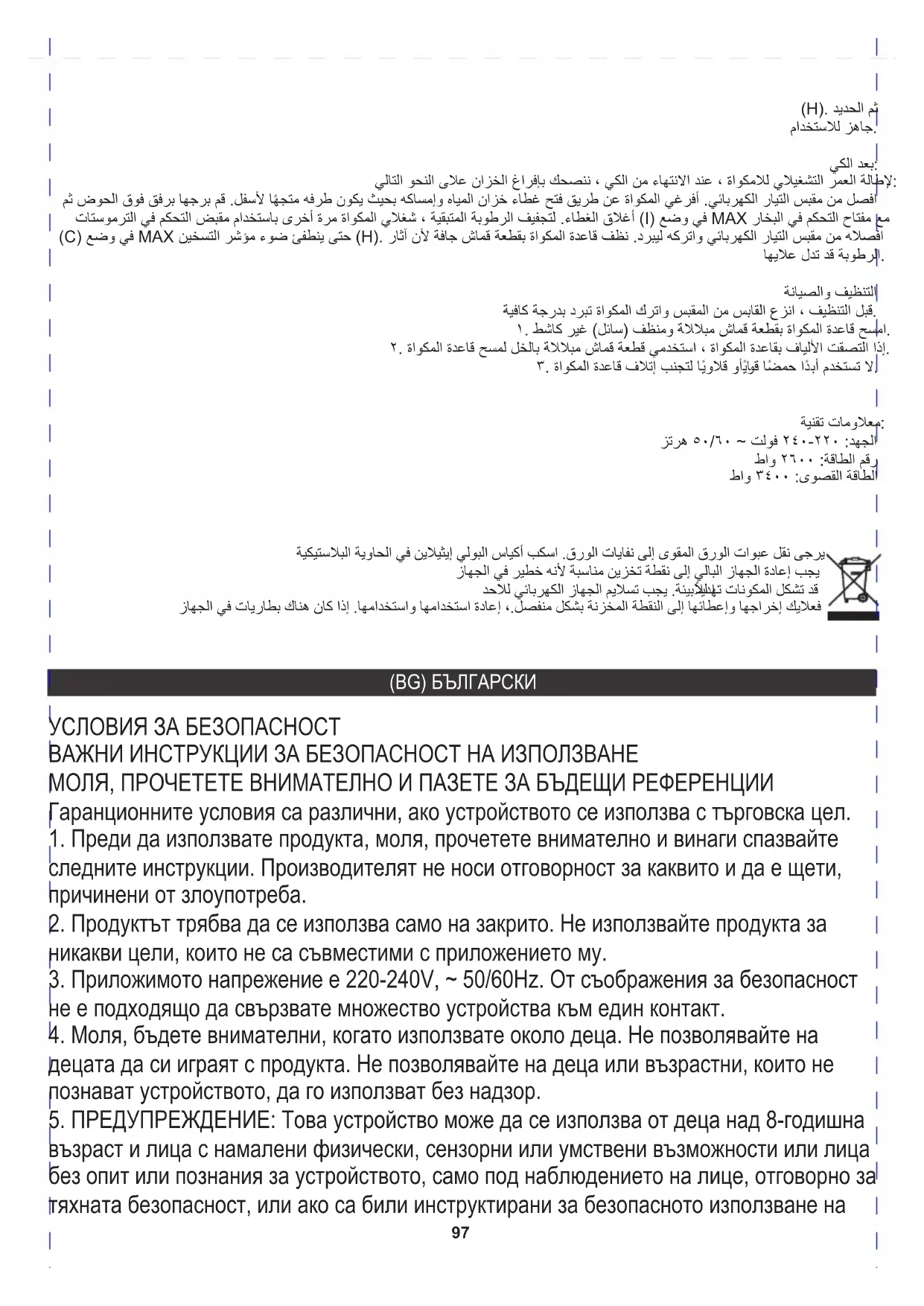 5. ПРЕДУПРЕЖДЕНИЕ: Това устройство може да се използва от деца над 8-годишна