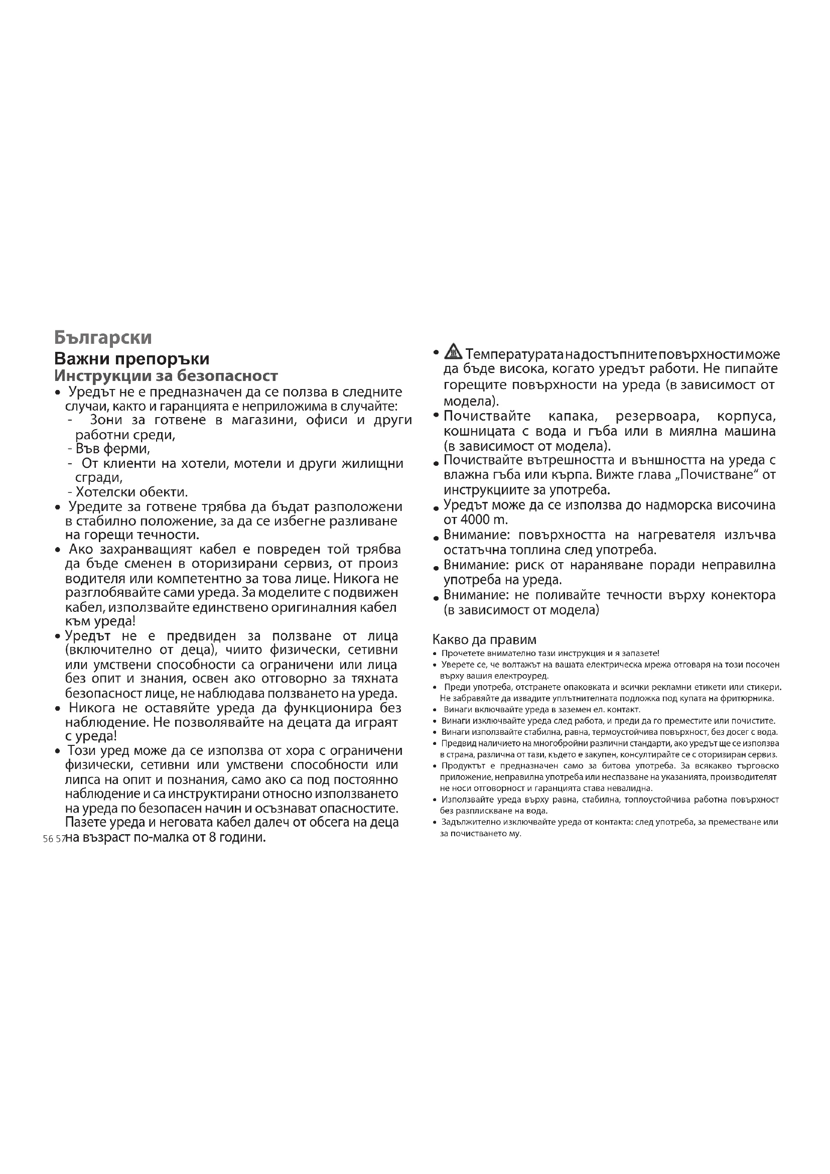 - Задължително изключвайте уреда от контакта: след употреба, за преместване или за почистването му.58 59