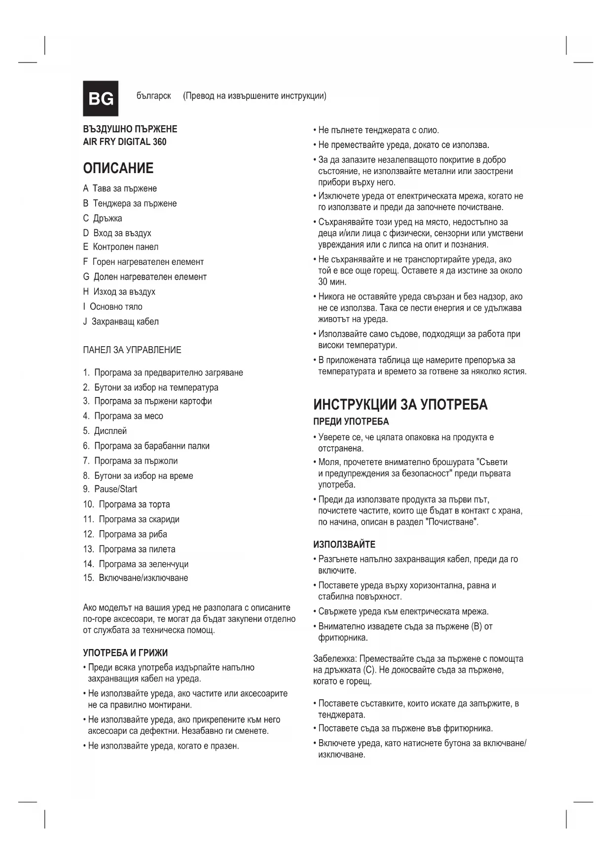 РЪКОВОДСТВО ЗА ПОТРЕБИТЕЛЯ Air Fry Digital 360 TAURUS