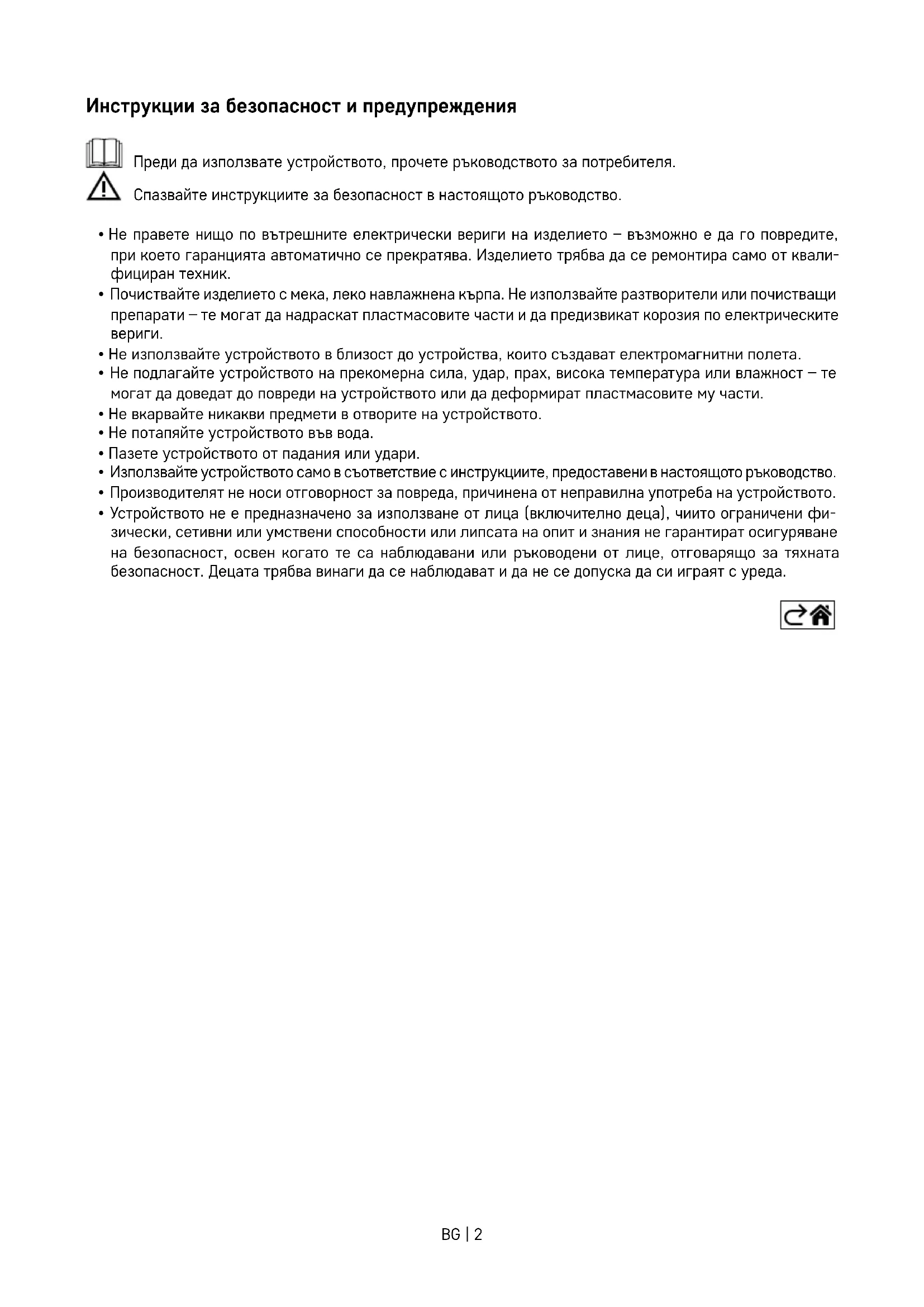 - Производителят не носи отговорност за повреда, причинена от неправилна употреба на устройството.