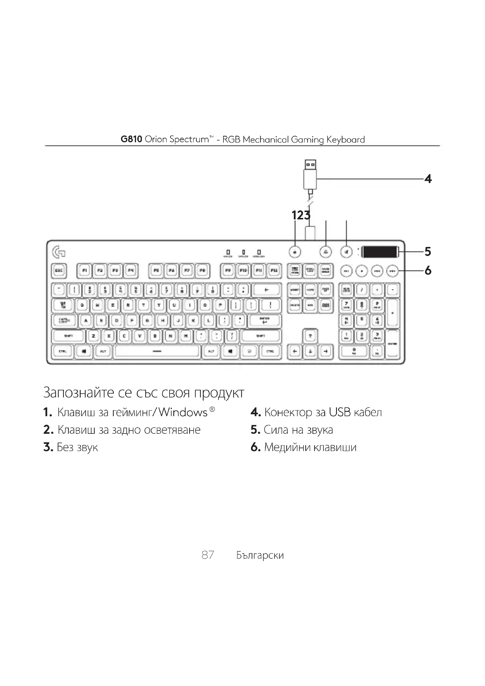 - RGB Mechanical Gaming Keyboard 87 Български Запознайте се със своя продукт