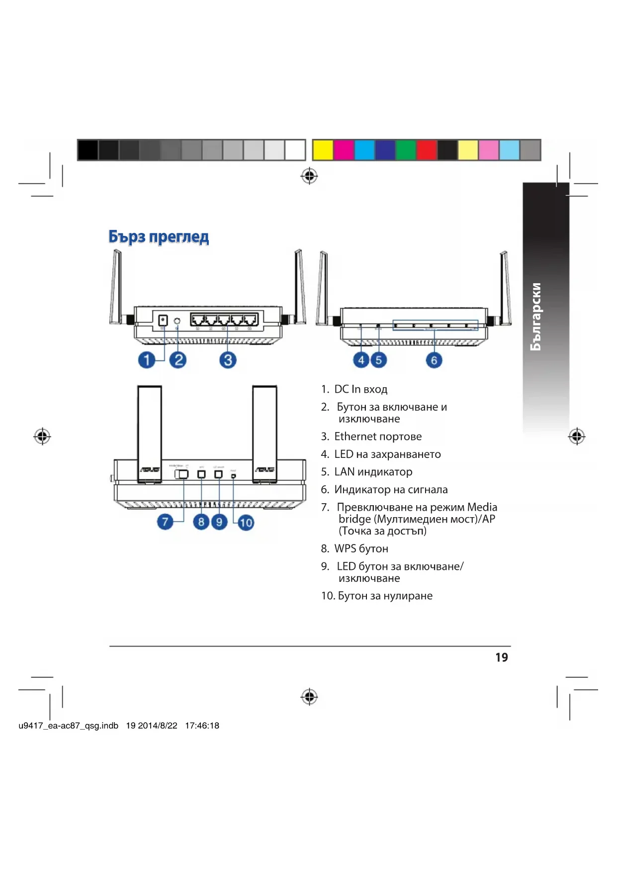 WPS връзка Последователно мигане назад и напред: u9417_ea-ac87_qsg.indb 20 2014/8/22 17:46:19Български