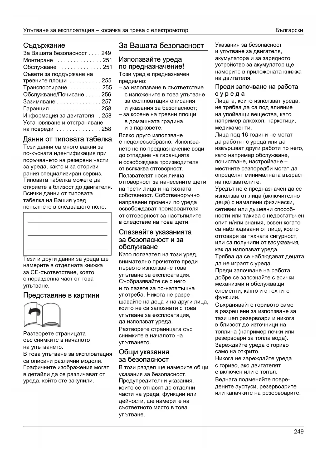 !Упътване за експлоатация – косачка за трева с електромотор Български