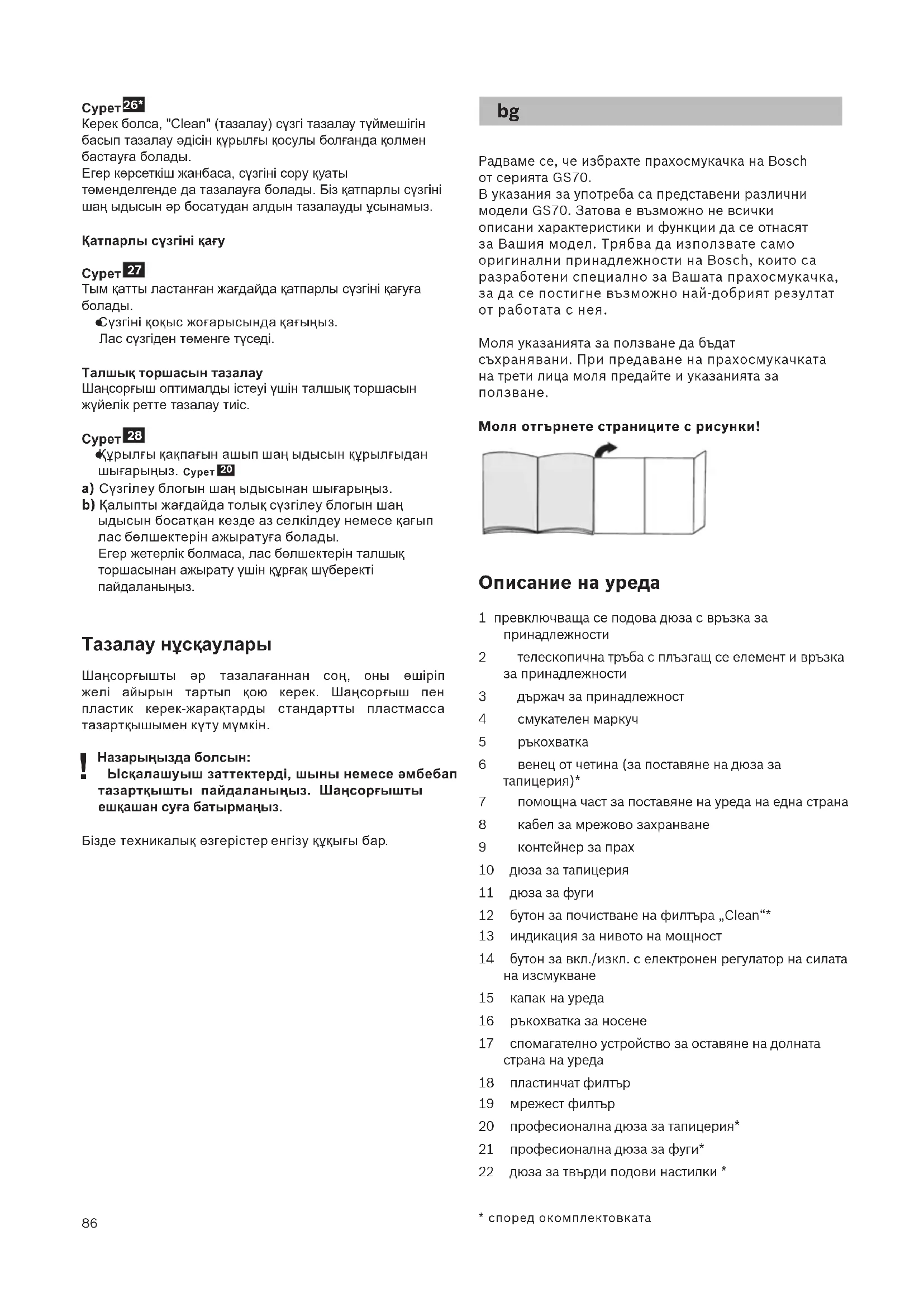 Радваме се, че избрахте прахосмукачка на Bosch от серията GS70. В указания за употреба са представени различни модели GS70. Затова е възможно не всички описани характеристики и функции да се отнасят за Вашия модел. Трябва да използвате само оригинални принадлежности на Bosch, които са разработени специално за Вашата прахосмукачка, за да се постигне възможно най-добрият резултат от работата с нея. Моля указанията за ползване да бъдат съхранявани. При предаване на прахосмукачката на трети лица моля предайте и указанията за