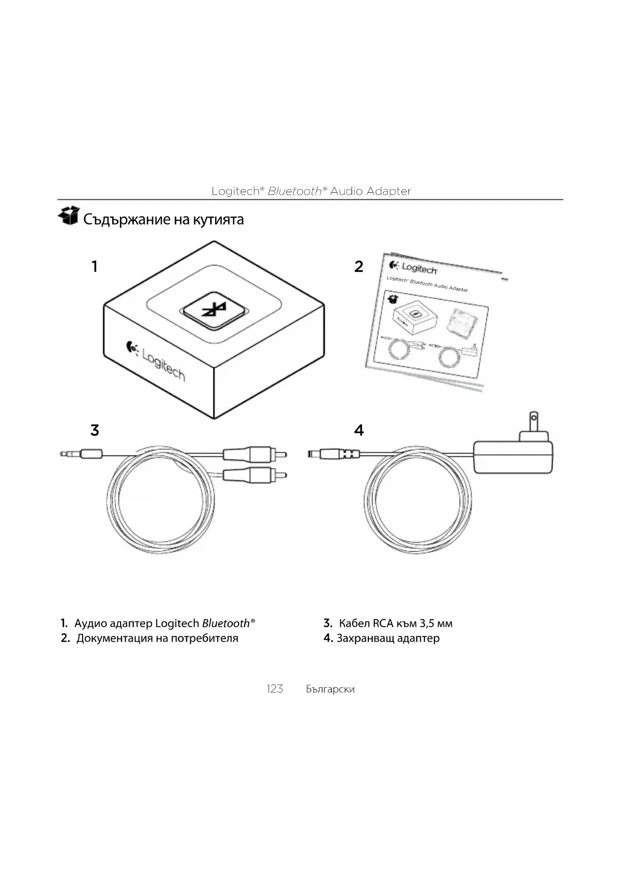 4. Захранващ адаптерLogitech® Bluetooth® Audio Adapter124 Български