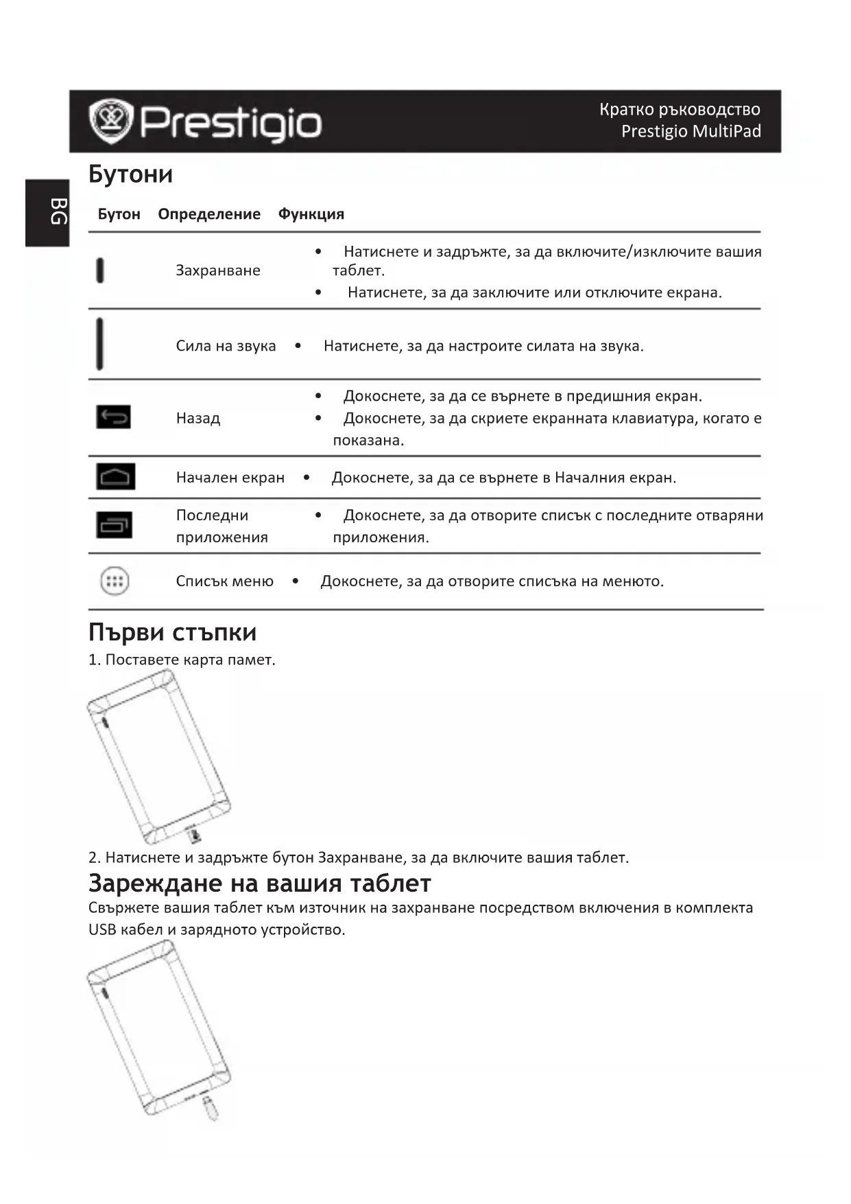 ПреднакамераBG Кратко ръководство Prestigio MultiPad