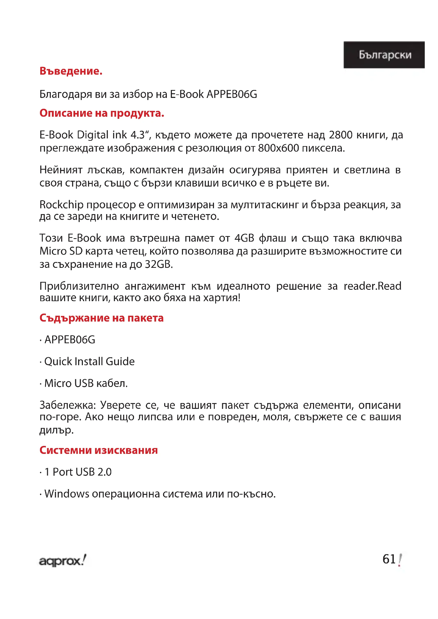 РЪКОВОДСТВО ЗА ПОТРЕБИТЕЛЯ APPEB06G Aqprox