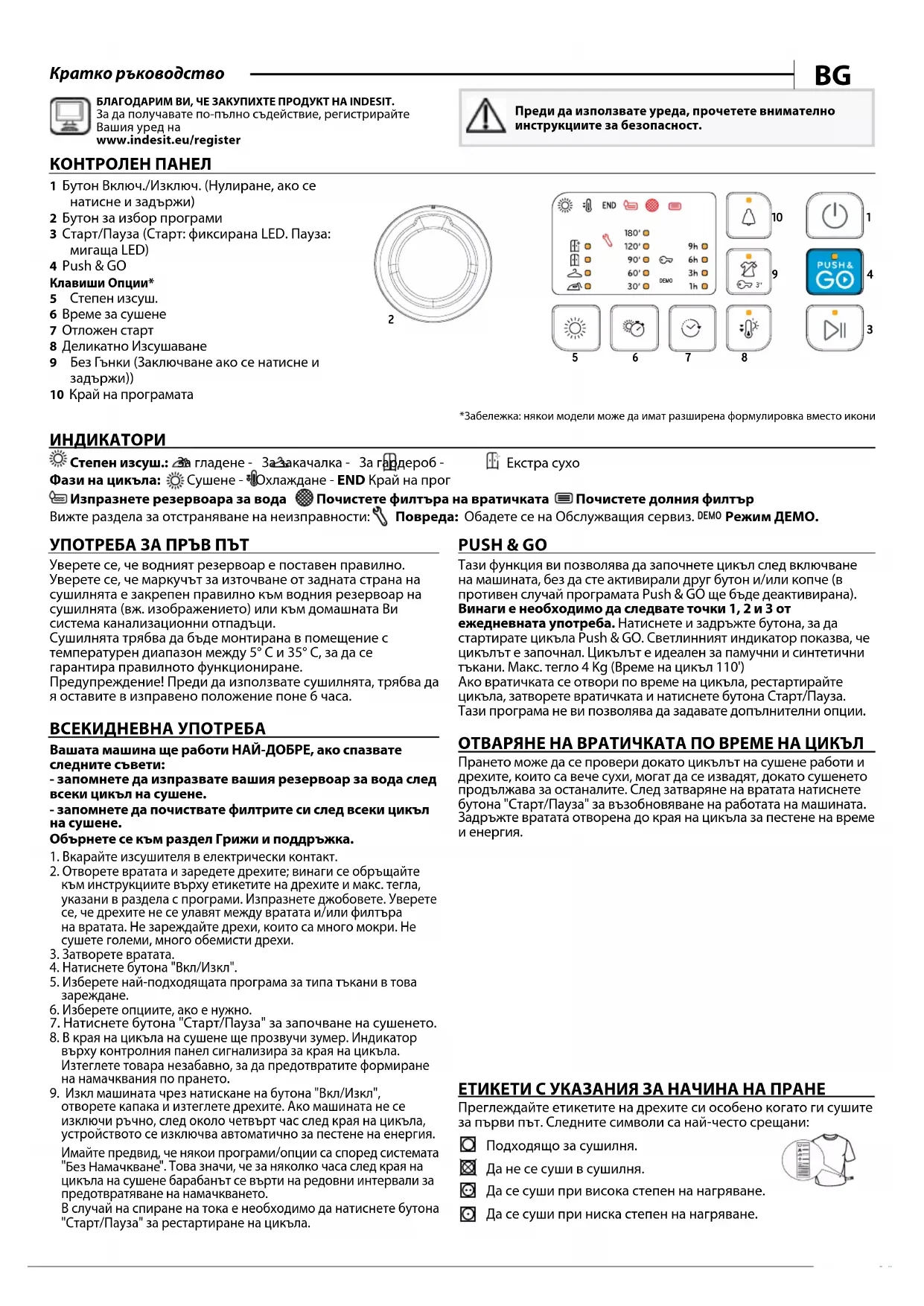 DEMOБЛАГОДАРИМ ВИ, ЧЕ ЗАКУПИХТЕ ПРОДУКТ НА INDESIT.За да получавате по-пълно съдействие, регистрирайте Вашия уред на www.indesit.eu/register Фирмени политики, стандартна документация, поръчка на резервни части и допълнителна информация за продукти можете да намерите на: