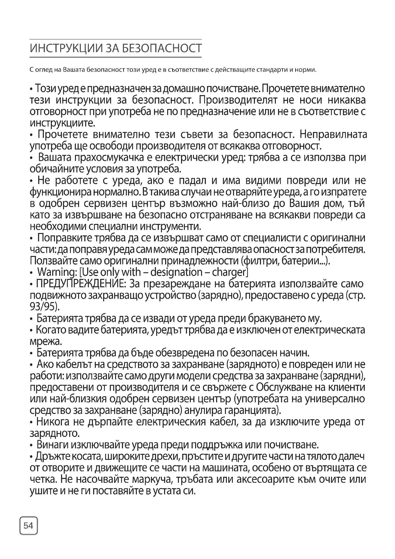 - Този уред е предназначен за домашно почистване. Прочетете внимателно тези инструкции за безопасност. Производителят не носи никаква отговорност при употреба не по предназначение или не в съответствие с инструкциите.
