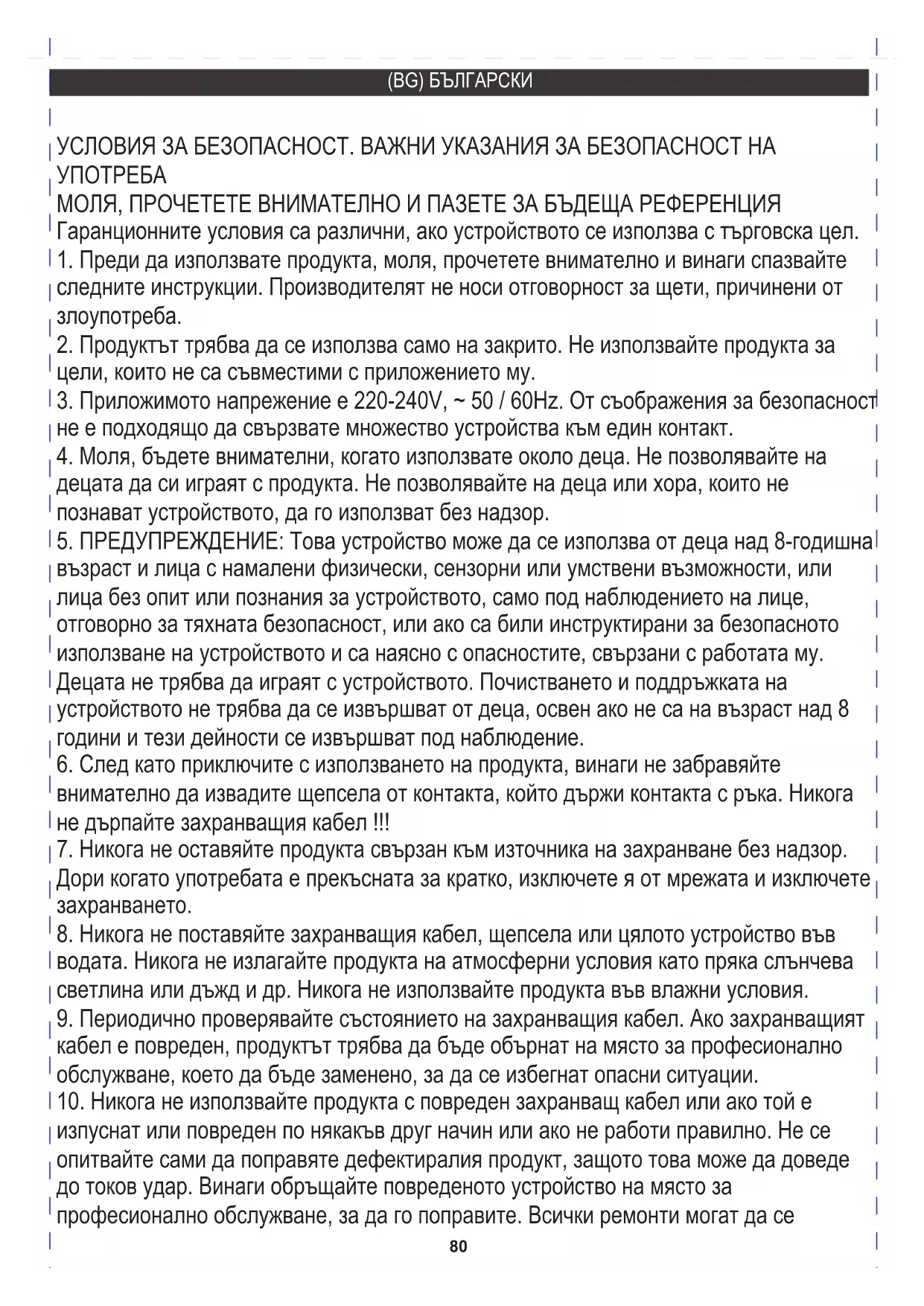 5. ПРЕДУПРЕЖДЕНИЕ: Това устройство може да се използва от деца над 8-годишна