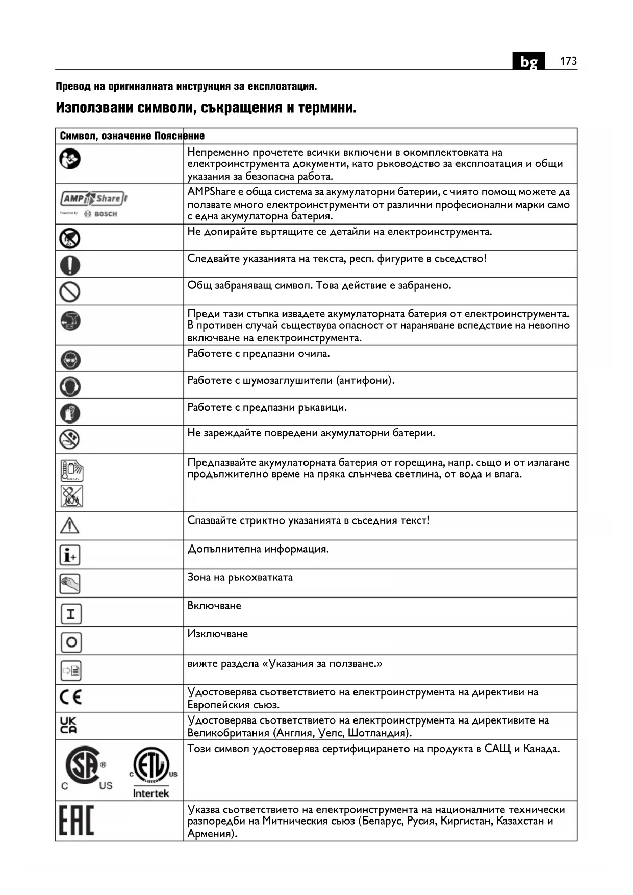 ![]() | Указва съответствието на електроинструмента на националните технически разпоредби на Митническия съюз (Беларус, Русия, Киргистан, Казахстан и Армения). |