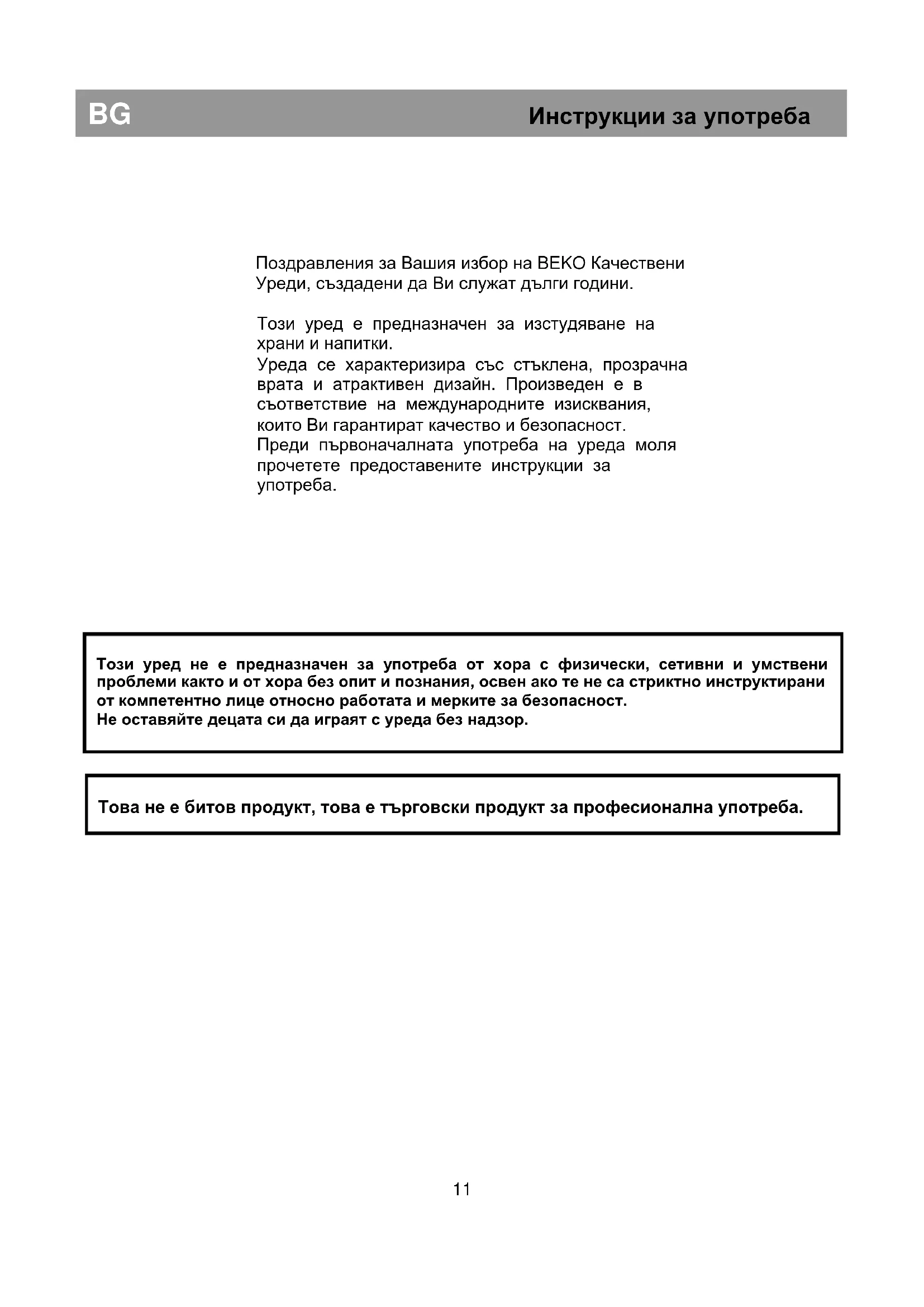 Това не е битов продукт, това е търговски продукт за професионална употреба.BG Инструкции за употреба Полезни съвети при изхвърляне на стария уред При изхвърляне на стария си хладилник трябва да се съобразите с някои условия. Пазете околната среда – изберете подходящ, незамърсяващ околната среда начин на изхвърляне. Условия при изхвърляне на стария