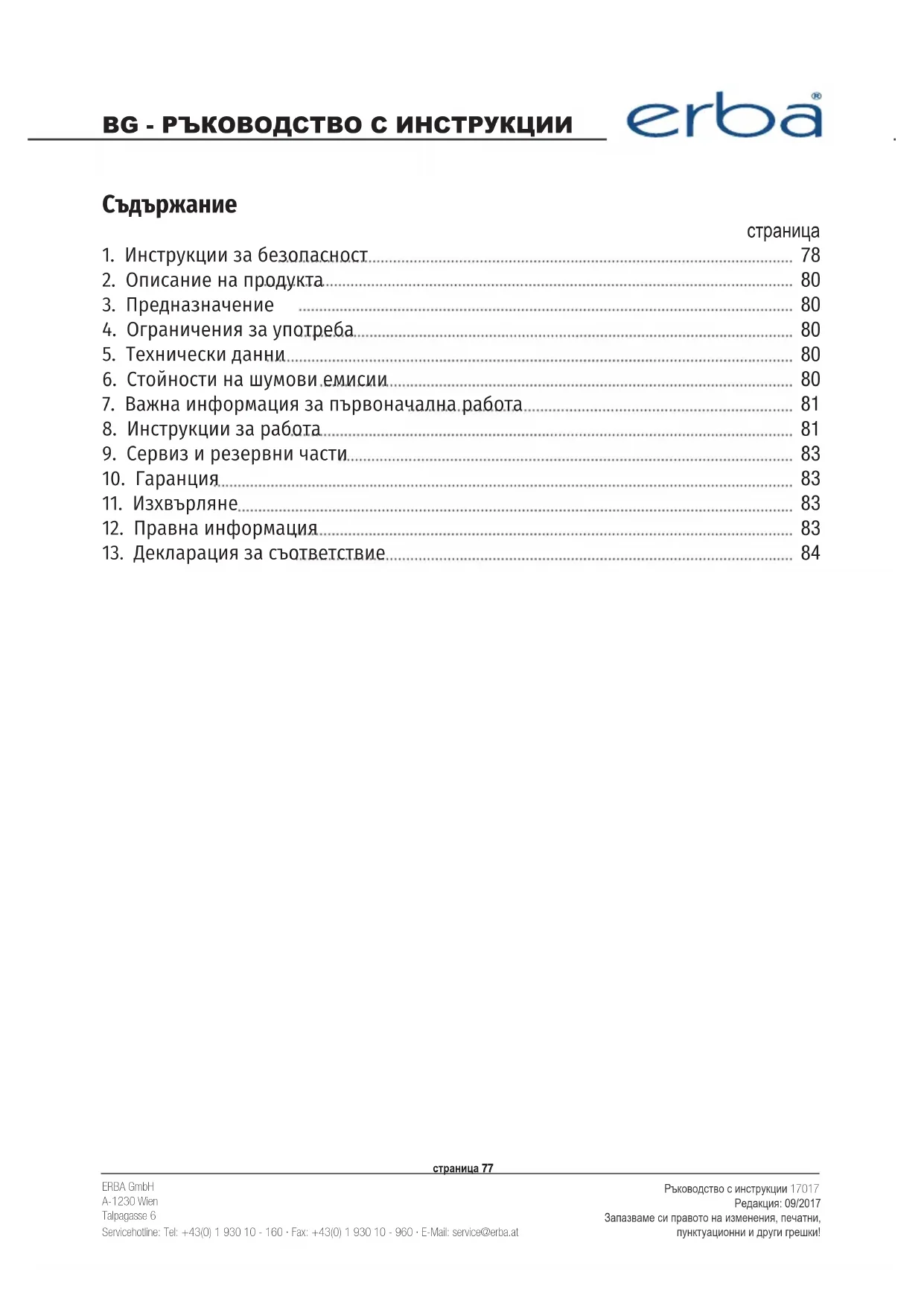 Всички права запазени. Това ръководство е защитено с авторски права. Възпроизвеждането му под каквато и да било форма (цифрова, печатна и др.) е строго забранено без писменото разрешение на ERBA GmbH.