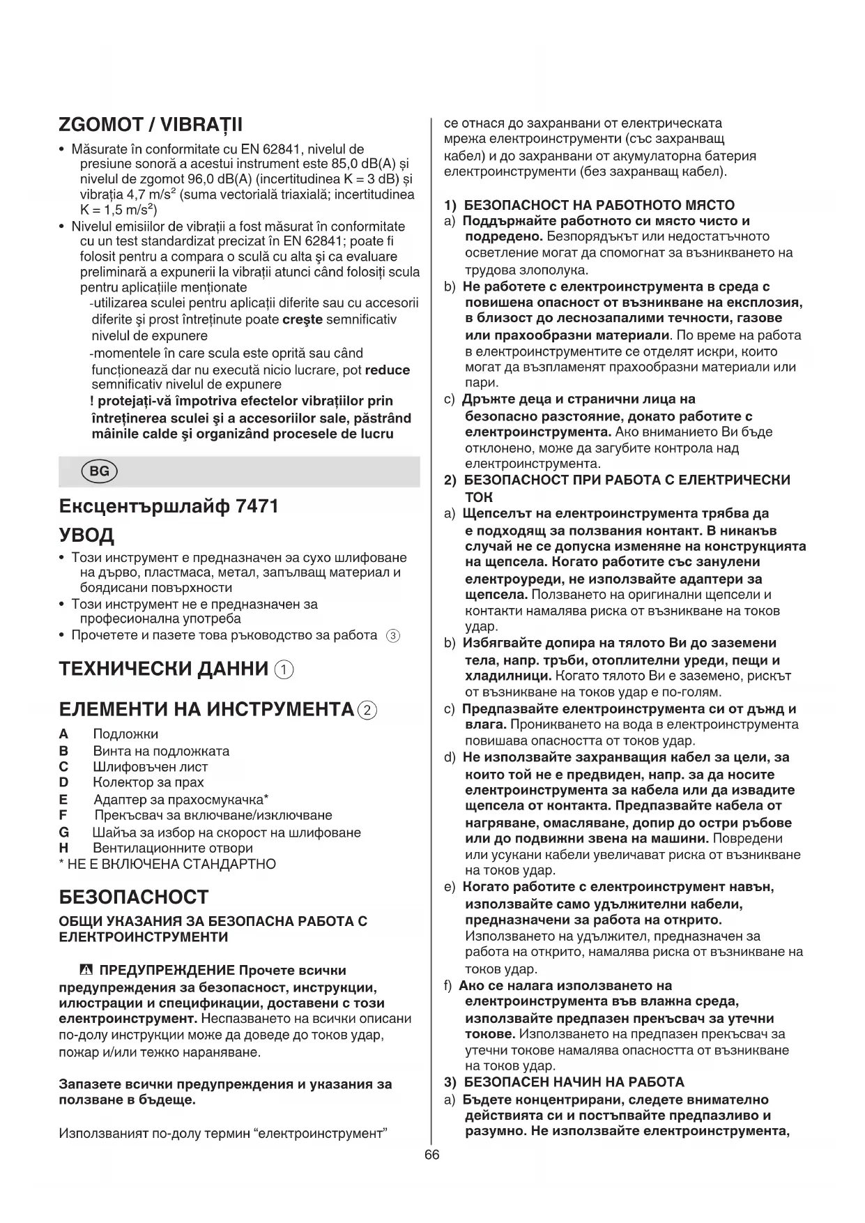 puteţi alege viteza de şlefuire dorită - adaptaţi viteza la mărimea granulaţiei folosite - înainte de a începe lucrul stabiliţi viteza şi granulaţia66 се отнася до захранвани от електрическата мрежа електроинструменти (със захранващ кабел) и до захранвани от акумулаторна батерия електроинструменти (без захранващ кабел).