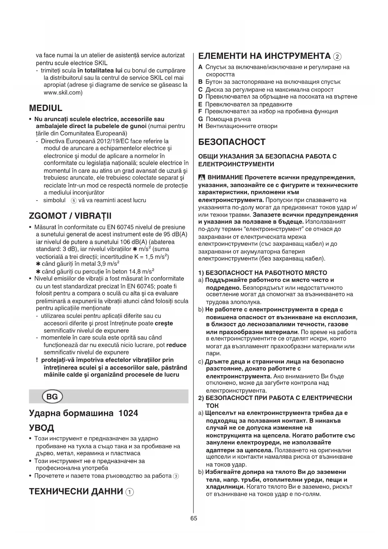 1024 AA - Електрическа бормашина SKIL - Безплатно ръководство за потребителя