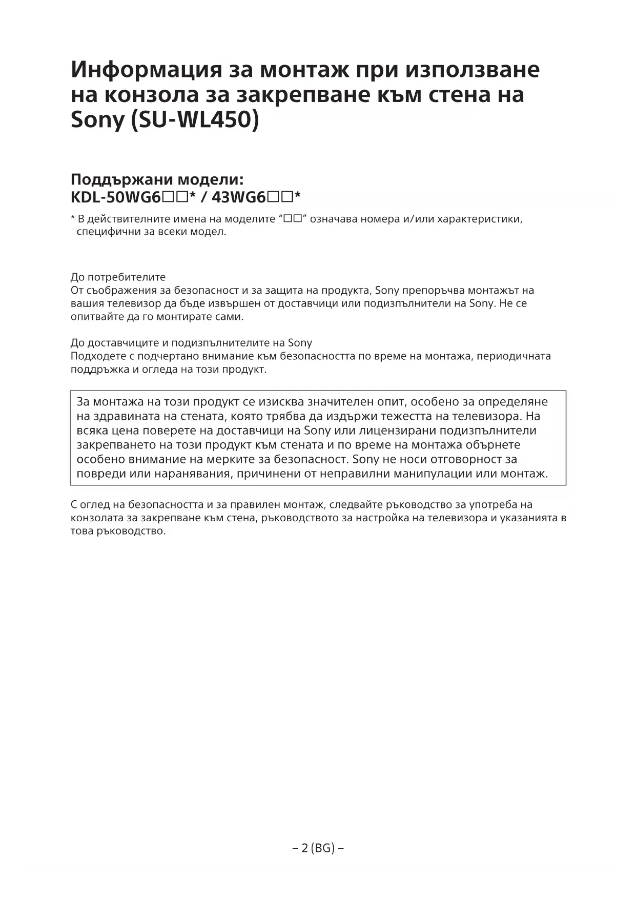 РЪКОВОДСТВО ЗА ПОТРЕБИТЕЛЯ Bravia KDL50WG663 SONY
