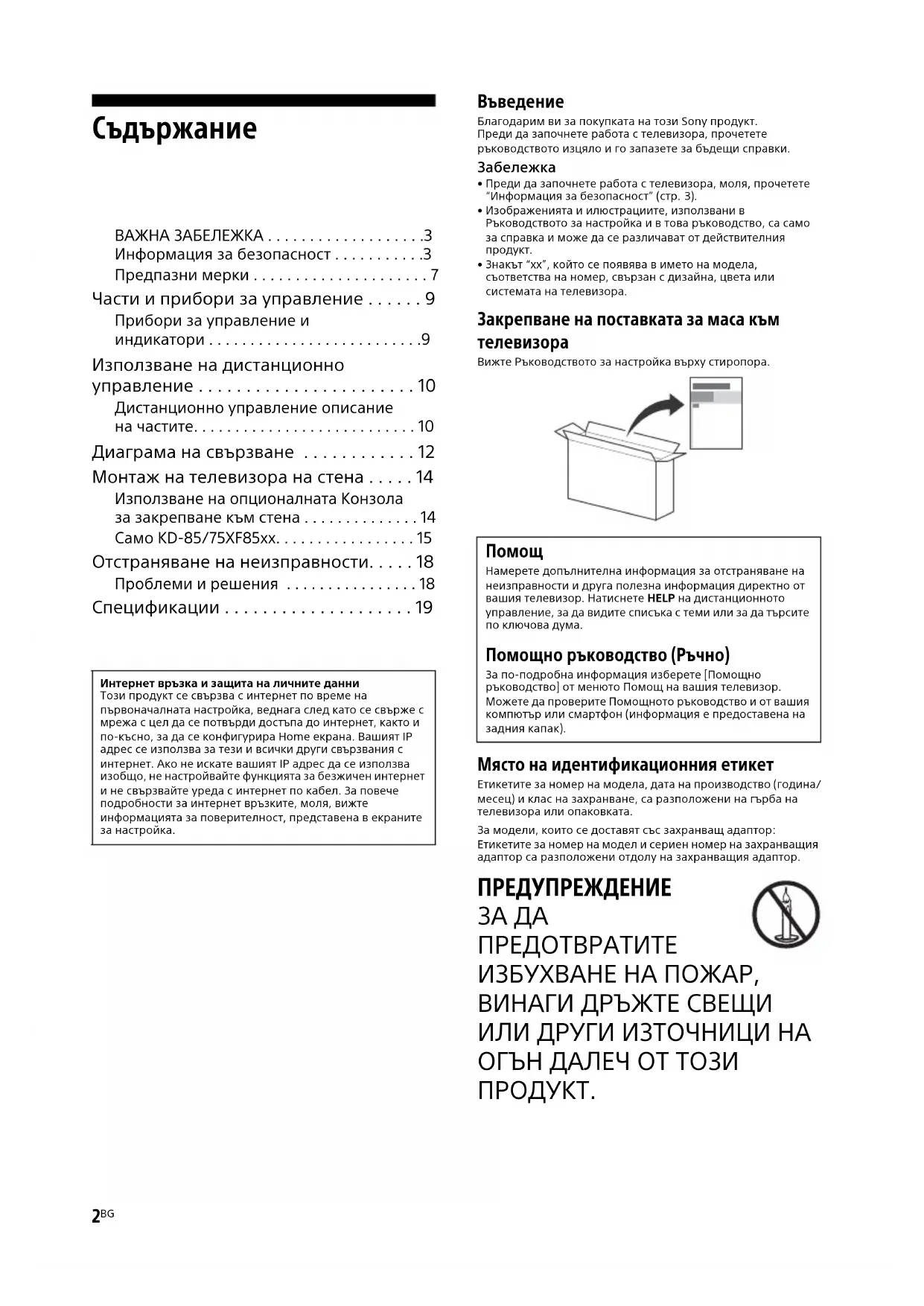 РЪКОВОДСТВО ЗА ПОТРЕБИТЕЛЯ Bravia KD43XF8796 SONY