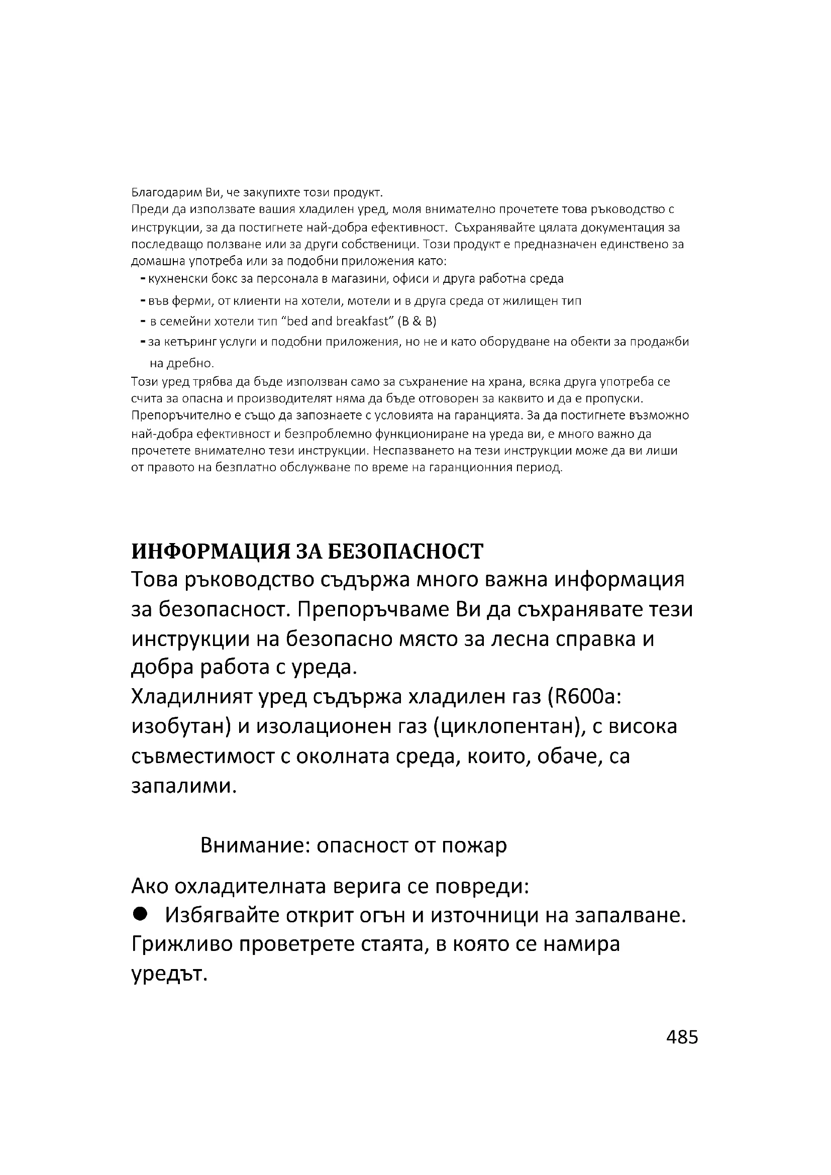 Благодарим Ви, че закупихте този продукт. Преди да използвате вашия хладилен уред, моля внимателно прочетете това ръководство с инструкции, за да постигнете най-добра ефективност. Съхранявайте цялата документация за последващо ползване или за други собственици. Този продукт е предназначен единствено за домашна употреба или за подобни приложения като: - кухненски бокс за персонала в магазини, офиси и друга работна среда - във ферми, от клиенти на хотели, мотели и в друга среда от жилищен тип - в семейни хотели тип “bed and breakfast” (B & B) - за кетъринг услуги и подобни приложения, но не и като оборудване на обекти за продажби