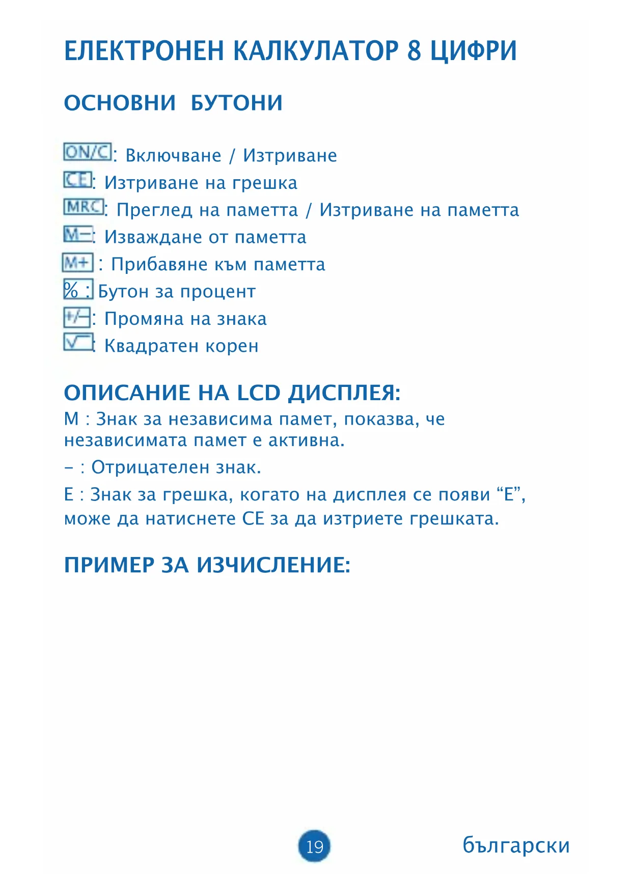 Възстановява независимата памет. Дисплей ОписаниеOперацияПример 5x6 +)32-6 -)36+17