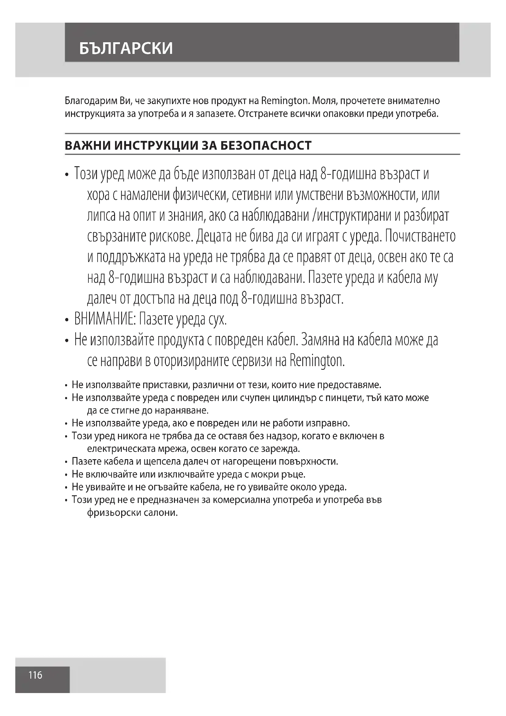 - Този уред не е предназначен за комерсиална употреба и употреба във фризьорски салони. БЪЛГАРСКИ117