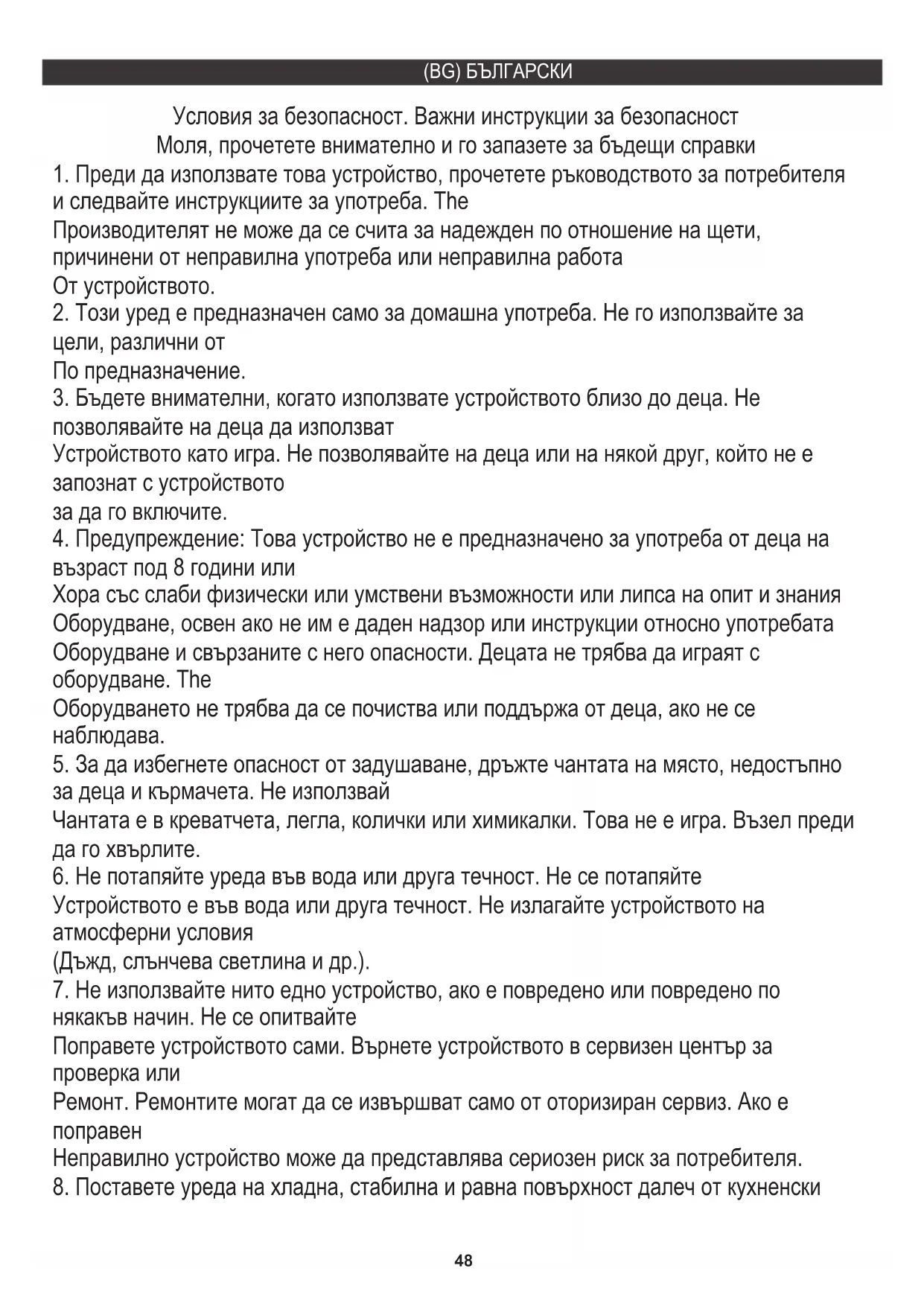 ﺔﯾرﺎطﺑ :ﺔﻗﺎطﻟا CR2032 3 تﻟوﻓ48 (BG) БЪЛГАРСКИ Производителят не може да се счита за надежден по отношение на щети, причинени от неправилна употреба или неправилна работа От устройството. Условия за безопасност. Важни инструкции за безопасност Моля, прочетете внимателно и го запазете за бъдещи справки