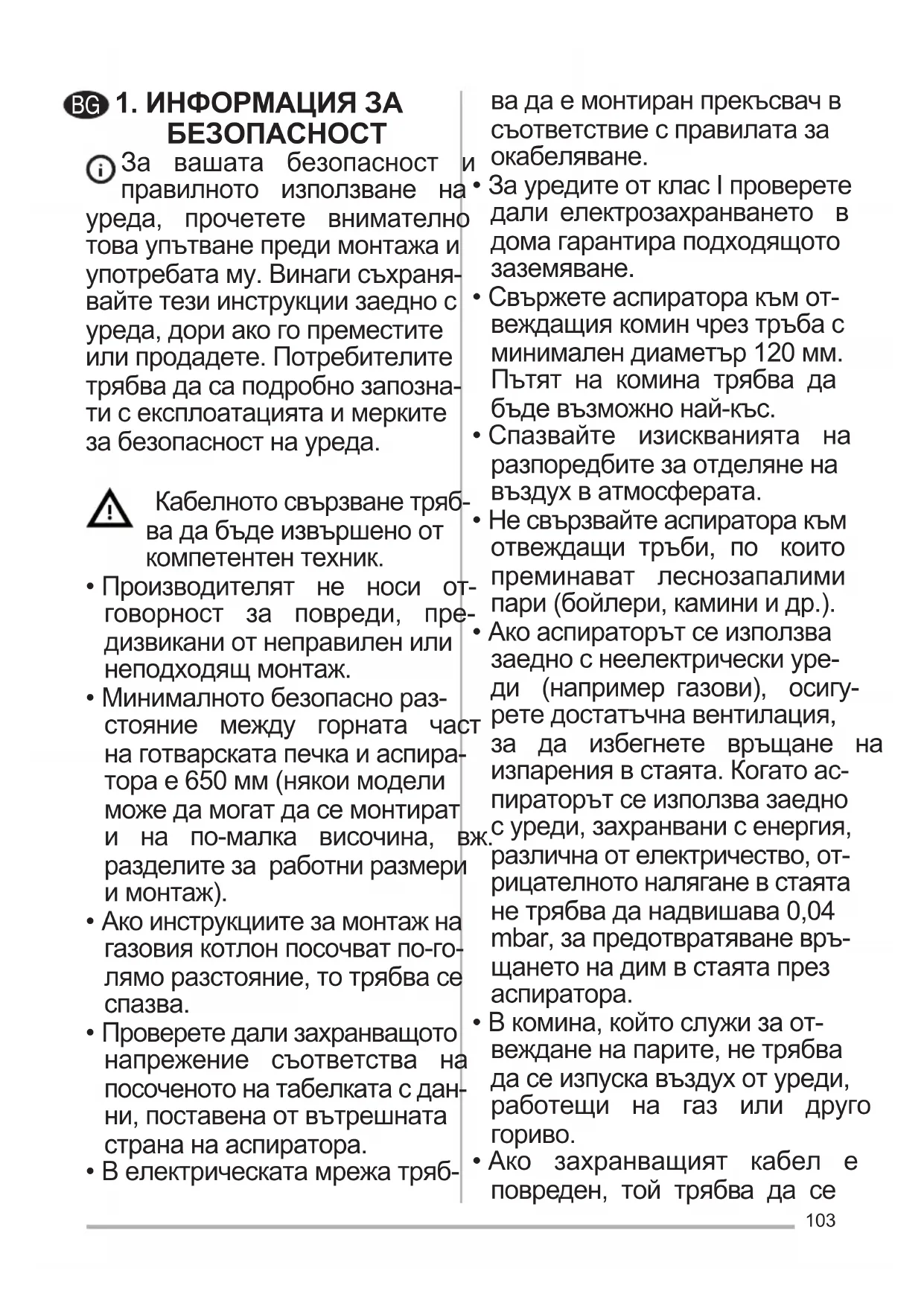 - Встаятатрябвадаимадобра вентилация,когатоаспирато- рътсеизползвасуреди,рабо- тещинагазилидругогориво (несеотнасязауреди,които изпускатсамовъздухобратно впомещението).