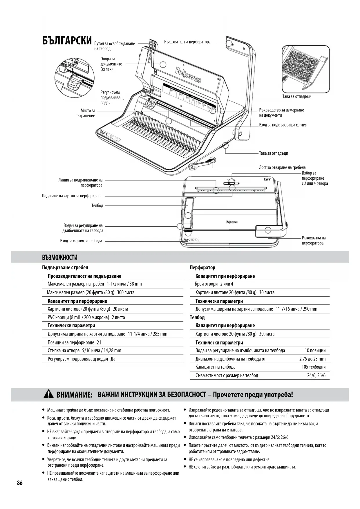 РЪКОВОДСТВО ЗА ПОТРЕБИТЕЛЯ Lyra 3in1 FELLOWES