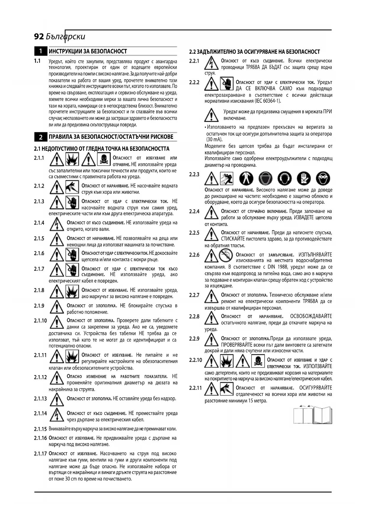 ОпаснОст От избухване и удар с електрически тОк. ИЗПОЛЗВАЙТЕ само детергенти, които не предизвикват корозия на материалите на покритието на маркуча за високо налягане/електрическия кабел.