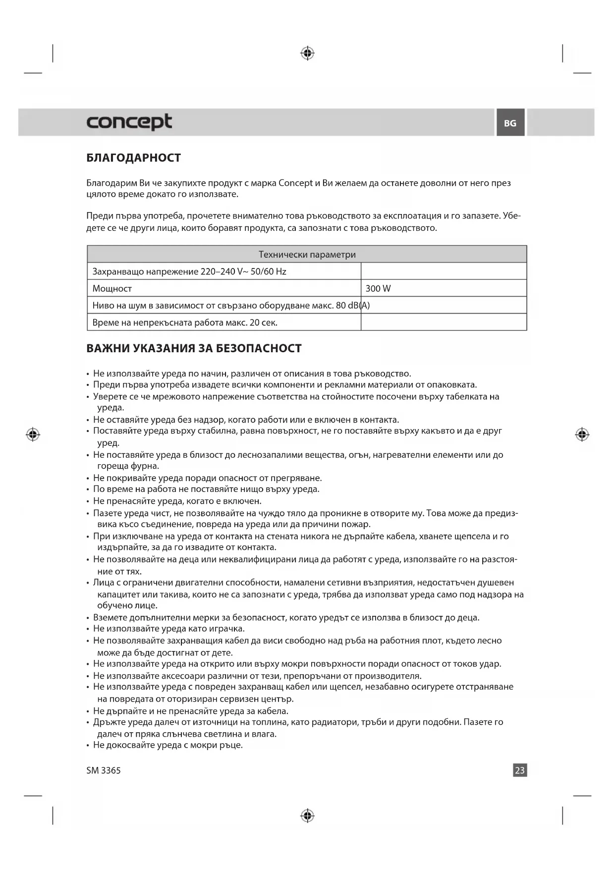РЪКОВОДСТВО ЗА ПОТРЕБИТЕЛЯ SM3365 Concept