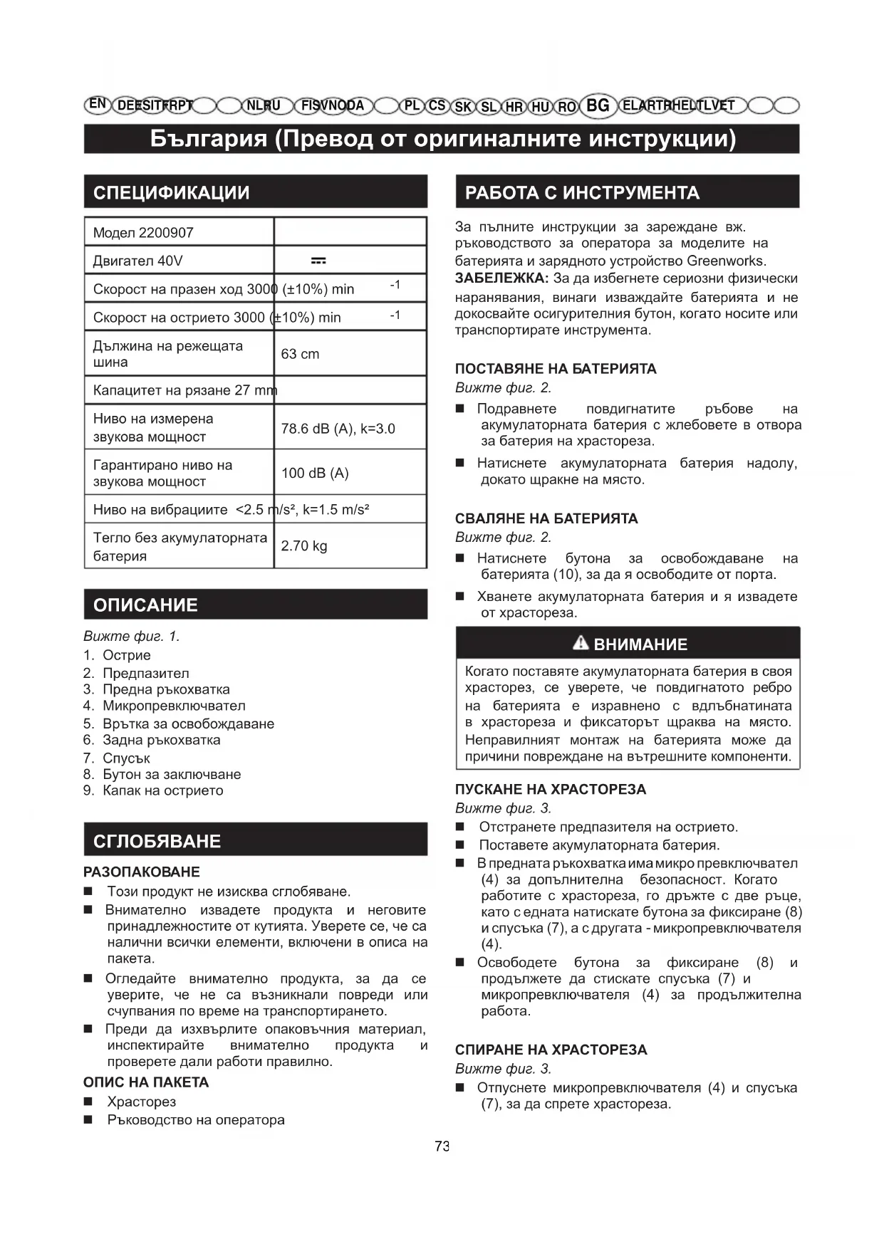 РЪКОВОДСТВО ЗА ПОТРЕБИТЕЛЯ G40HT GREENWORKS
